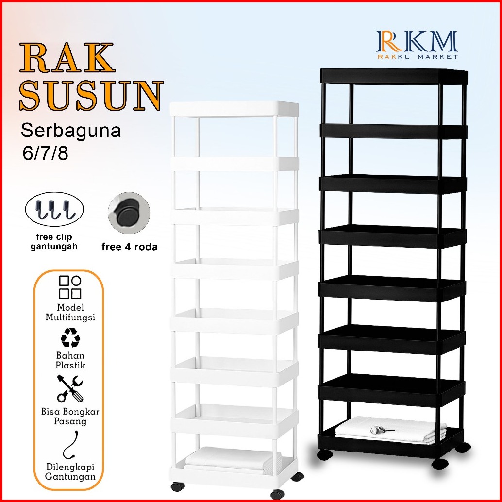 Rkm Rak Susun Serbaguna 7 Tingkat Bahan Plastik Dengan Roda Rak Kamar Mandi Portable Rak Dapur