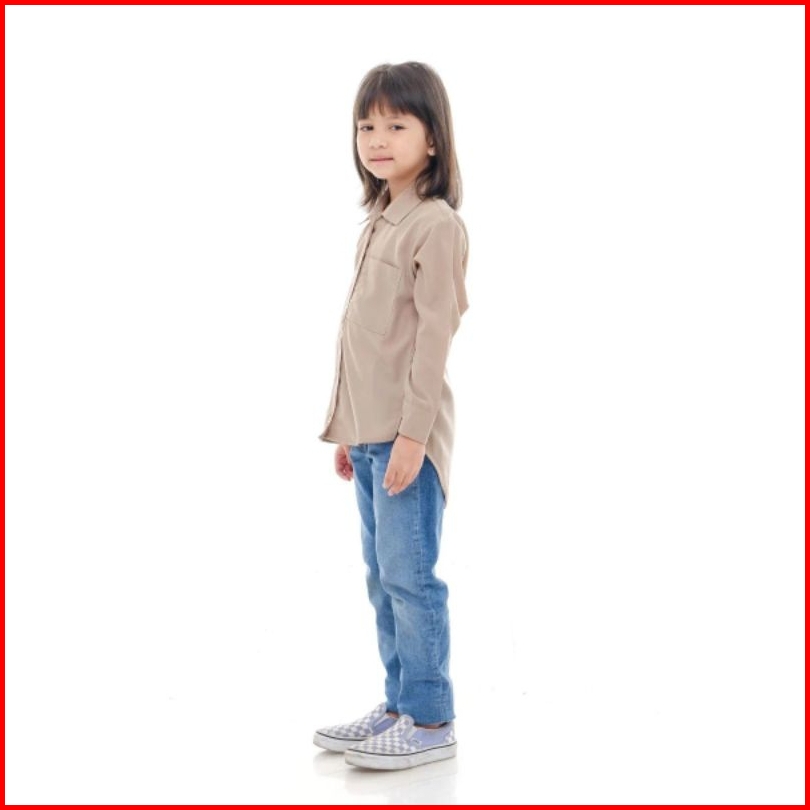 Kemeja Anak Perempuan Korea Style Terbaru Polos Overzize Warna Bahan Katun Linen Premium Usia 7 Sampai 13 Tahun