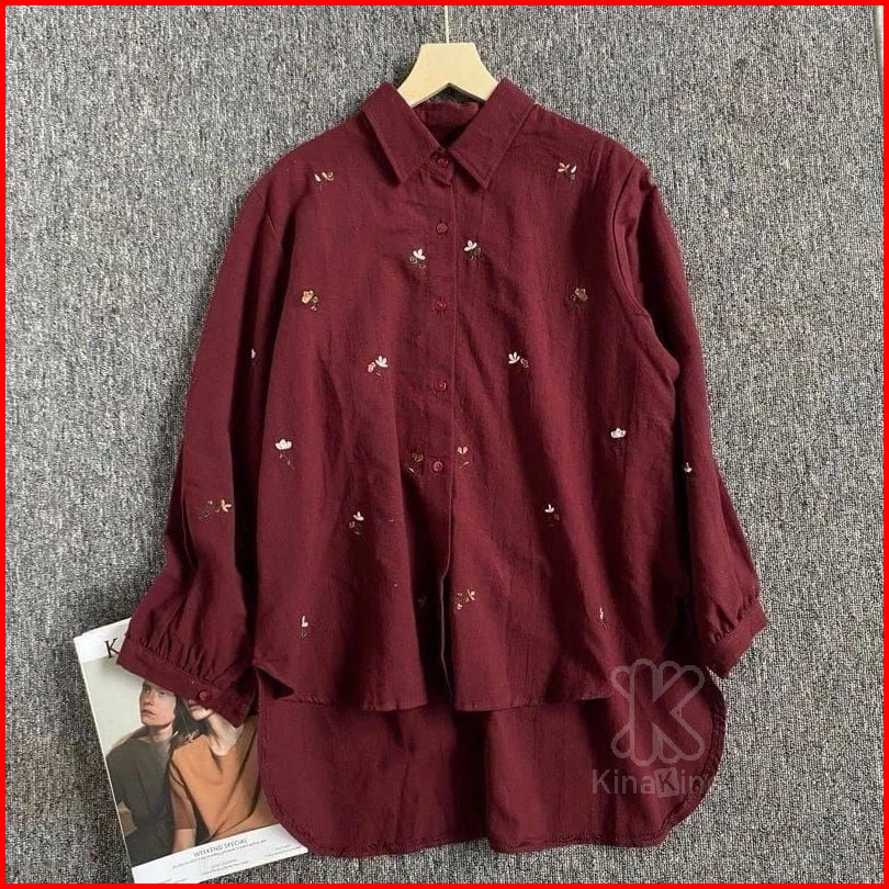 Kemeja Wanita Pololinen Bordir Bunga - Atasan Casual Lengan Panjang Adem Busui Friendly