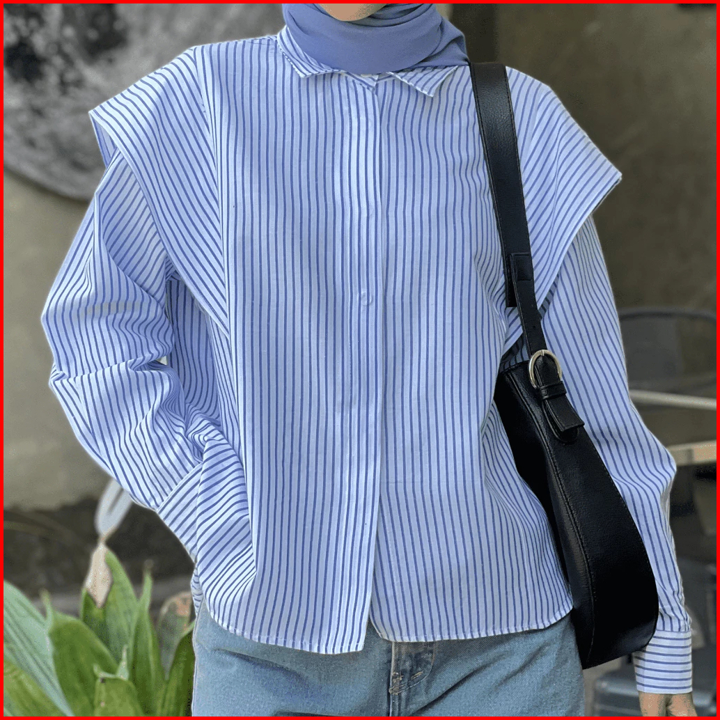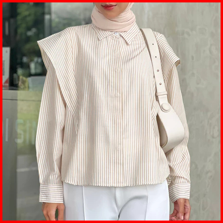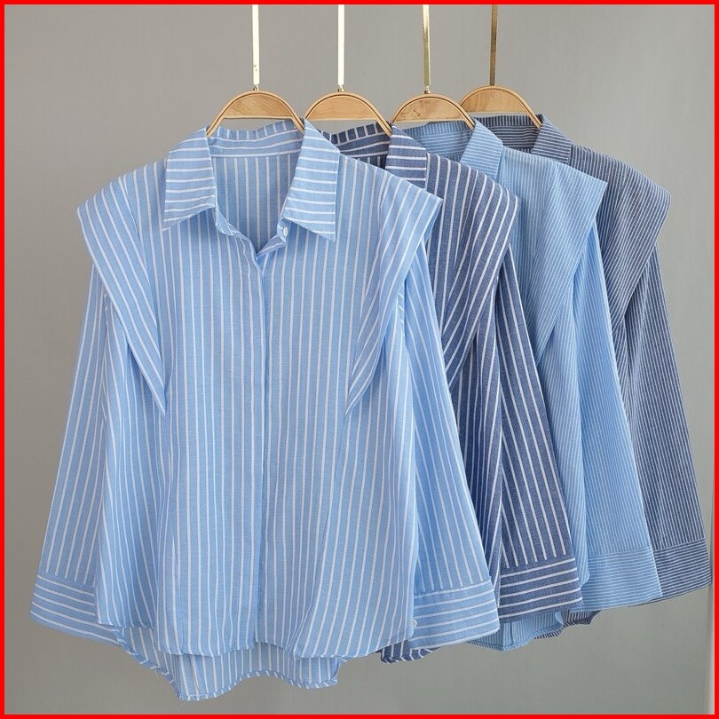 Kemeja Salur Kemeja Wanita Atasan Stripes Korean Style