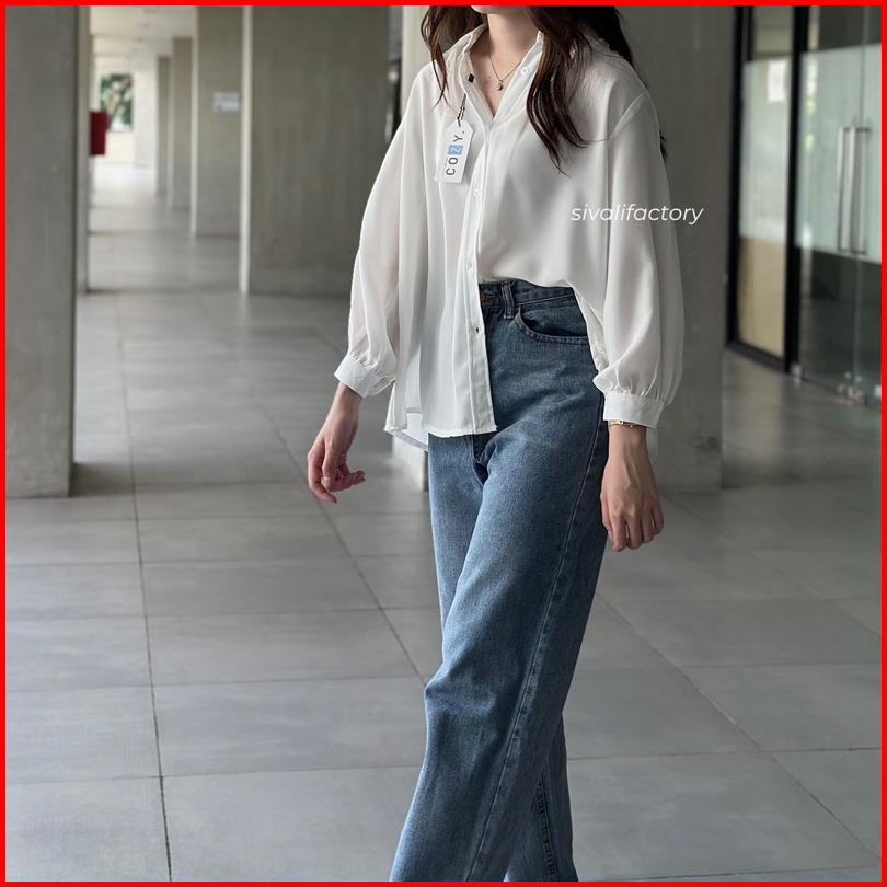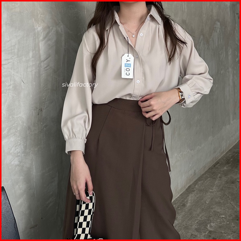Yuse Shirt - Kemeja Basic Wanita Lengan Panjang - Atasan Wanita Polyester