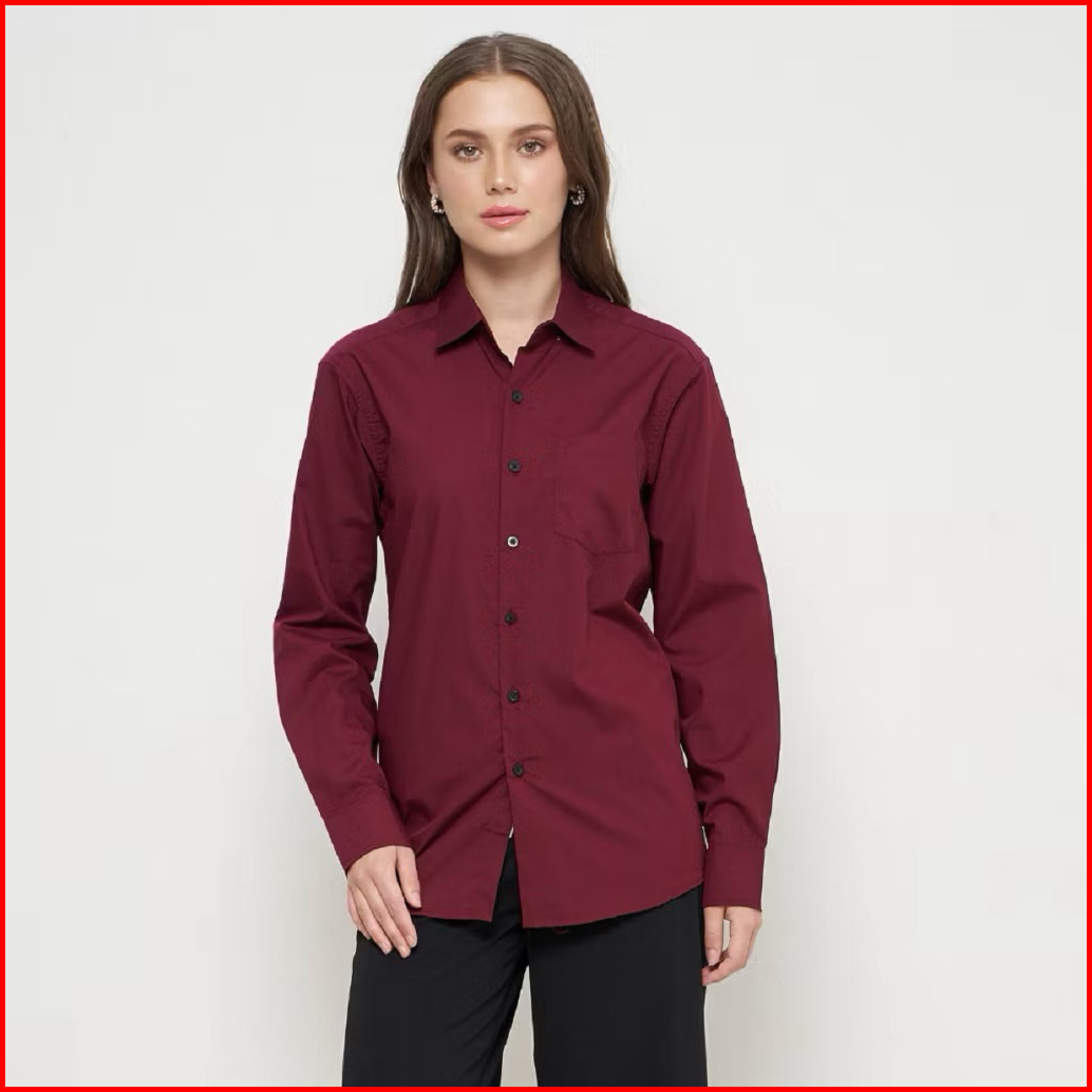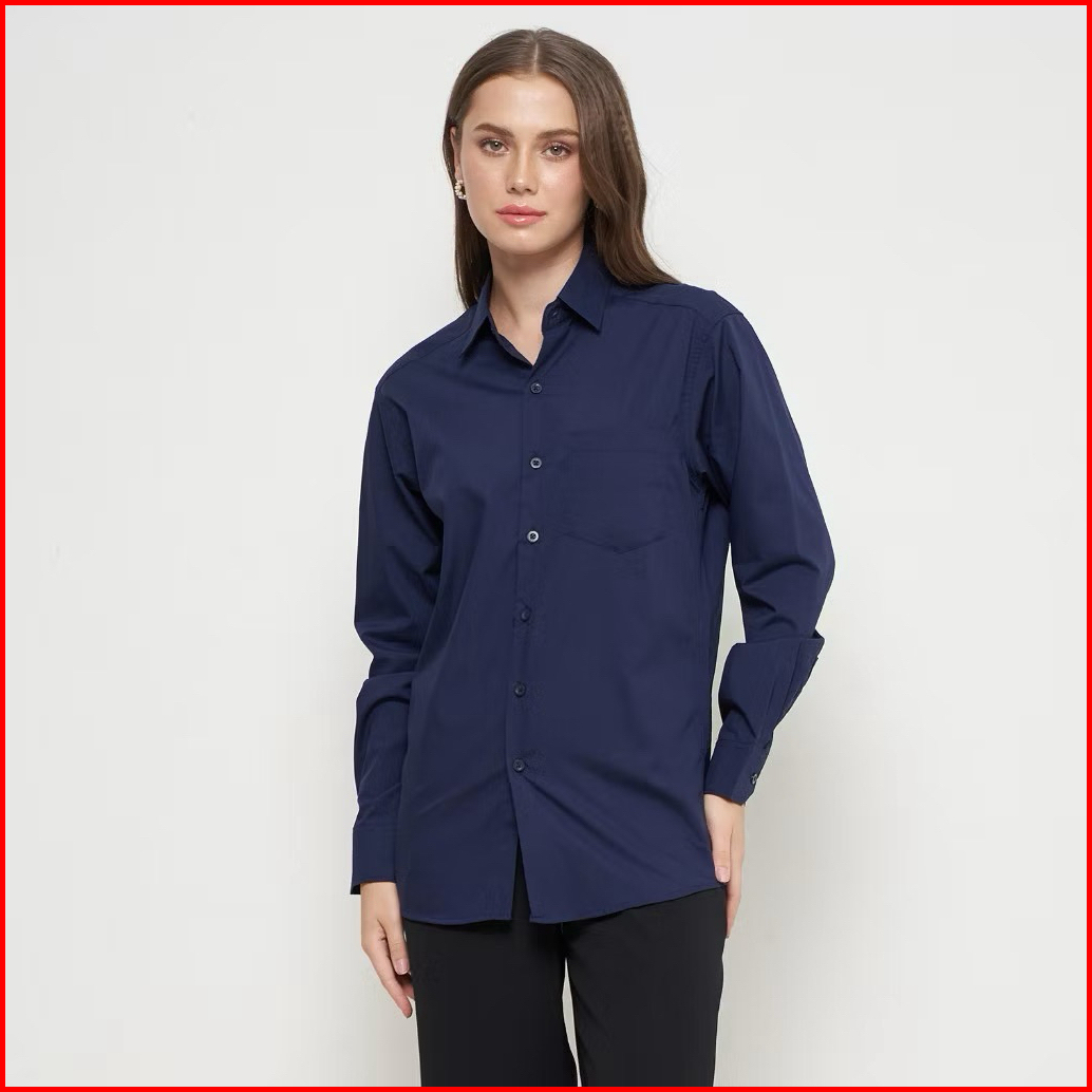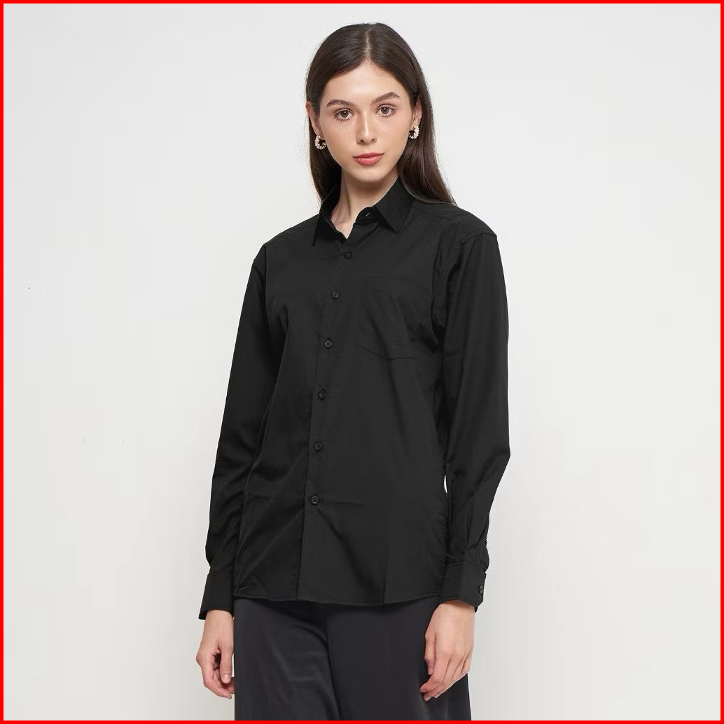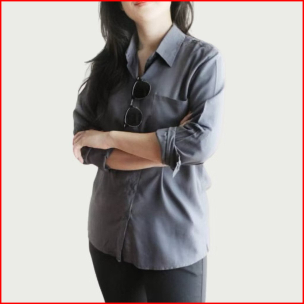 Kemeja Polos Wanita Lengan Panjang Hem Basic Kerja Formal Atasan Cewek Bahan Katun Premium