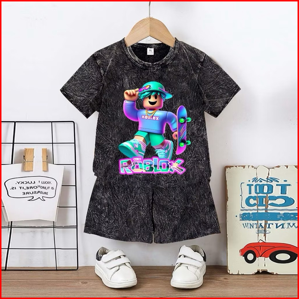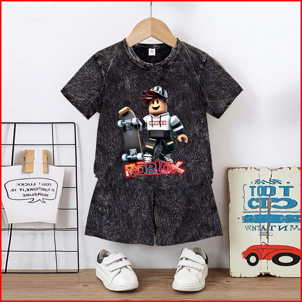 Setelan Anak Roblox Stone Wash Setelan Anak Harian Celana Pendek