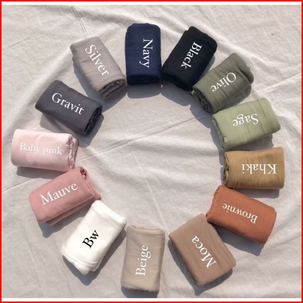 Beige, Rosie, Fossil, Coffe, Nude, Smoke beige, Plum, vanilla, Soft denim, Light beiggie, Soft barney, Frapuchinno, Silver, Broken white, Burgandy, Cream, Choco milo, Ash taupe, Taupe, Chesnut, Earth, Oat biscuit, Graphit, Navy, Sagee, Olivee, Thistle, Powder blue, Brownie, Millo, Dusty, Random, Hitamm, Mahoghani, Greybrown, Ivory, Khaki