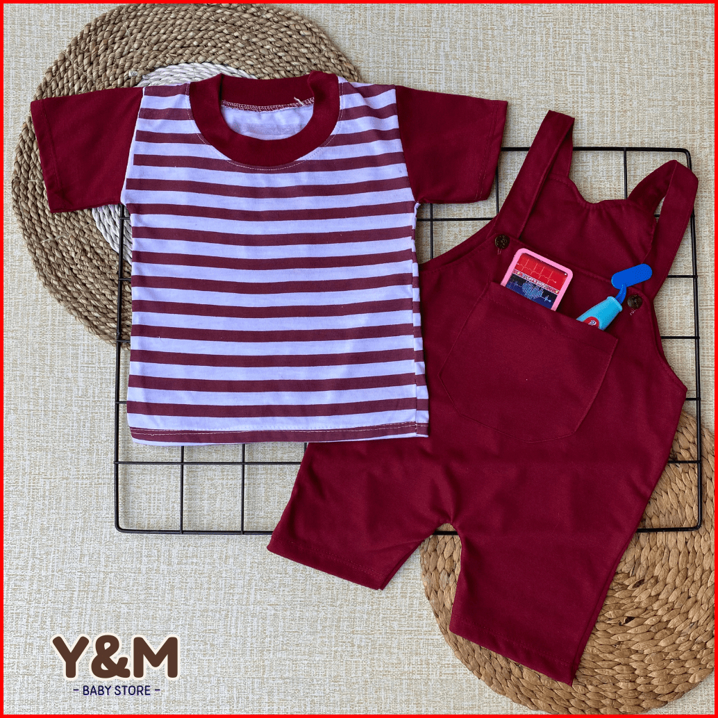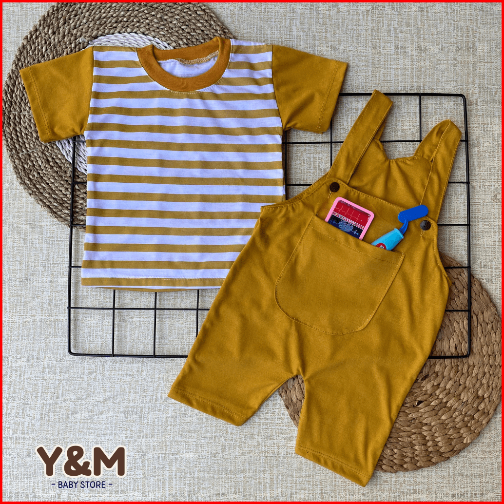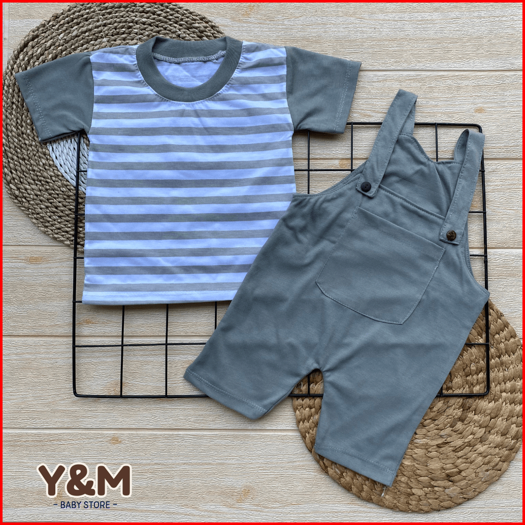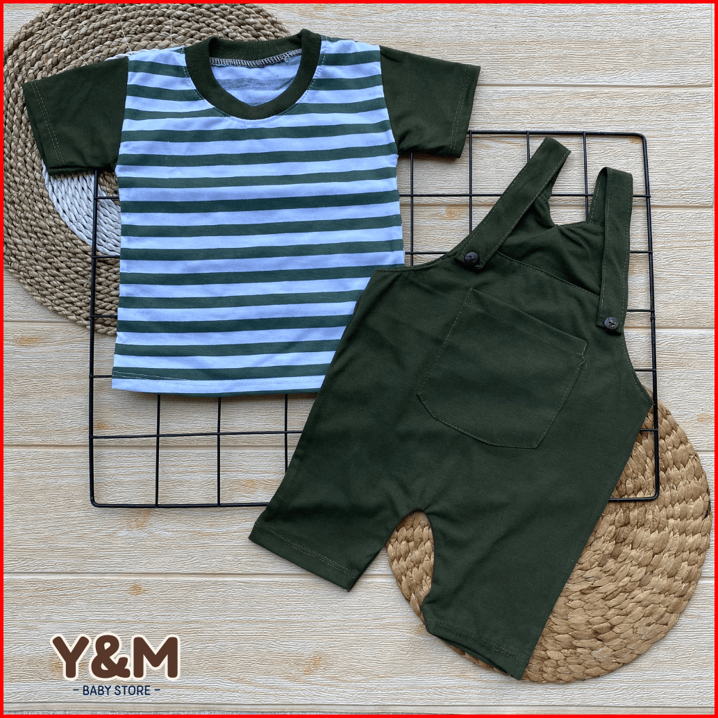 Y M Baby Jumpsuit Kodok Overall Motif Salur Setelan Bayi Bayi Usia 3-12 Bulan