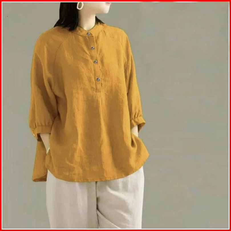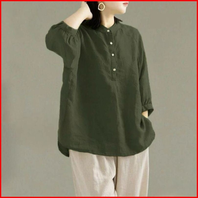 Kemeja Wanita Polos Linen Premium Kerah Shanghai K4