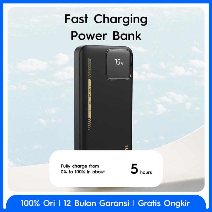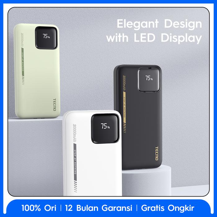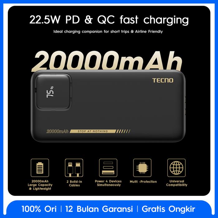 [Official Store ✔️] TECNO Powerbank 20000mAh - 2 Build-In Cables & 3 Port, 4 Synchronous Fast Charging