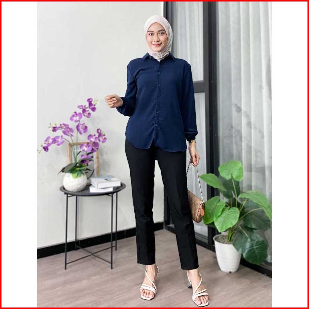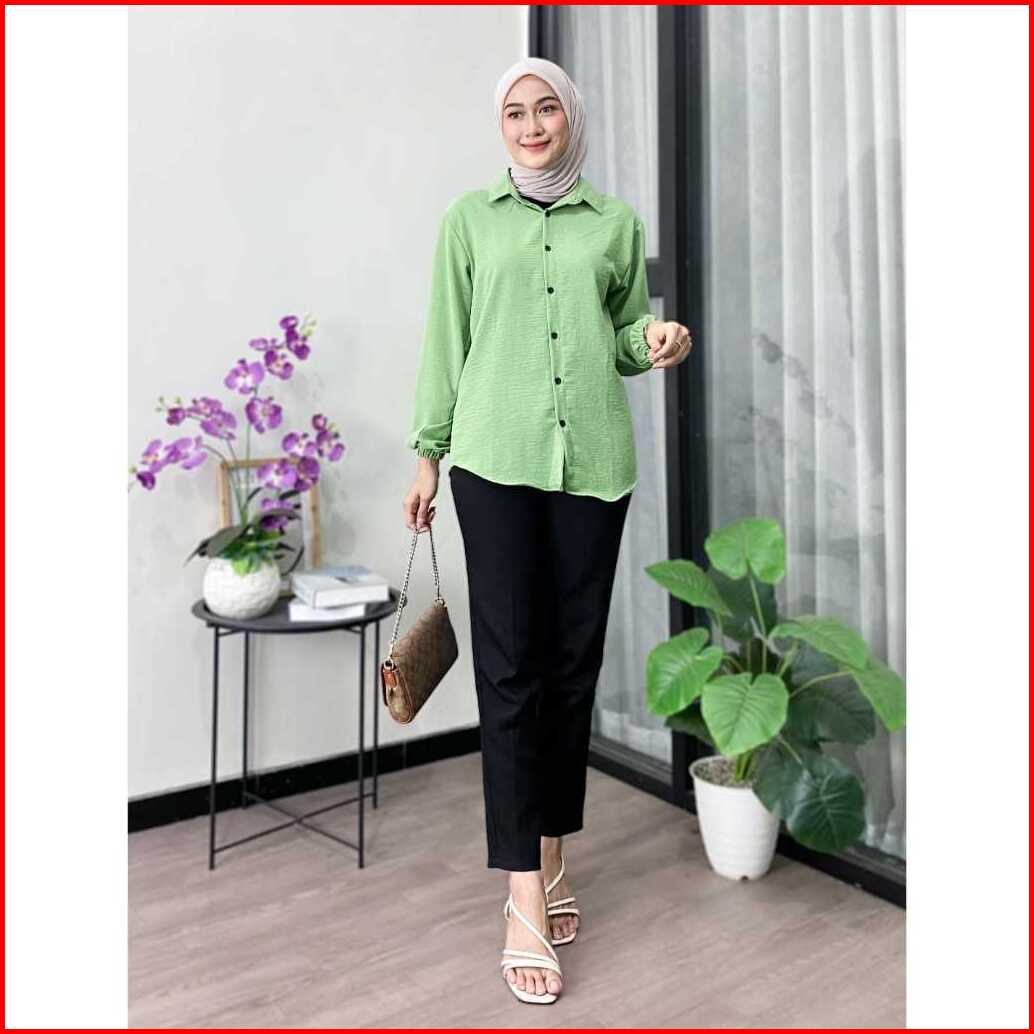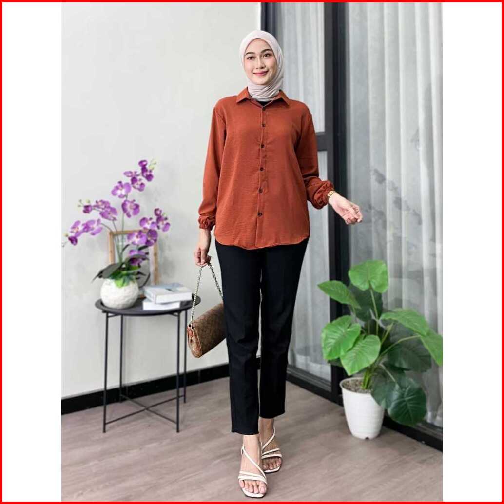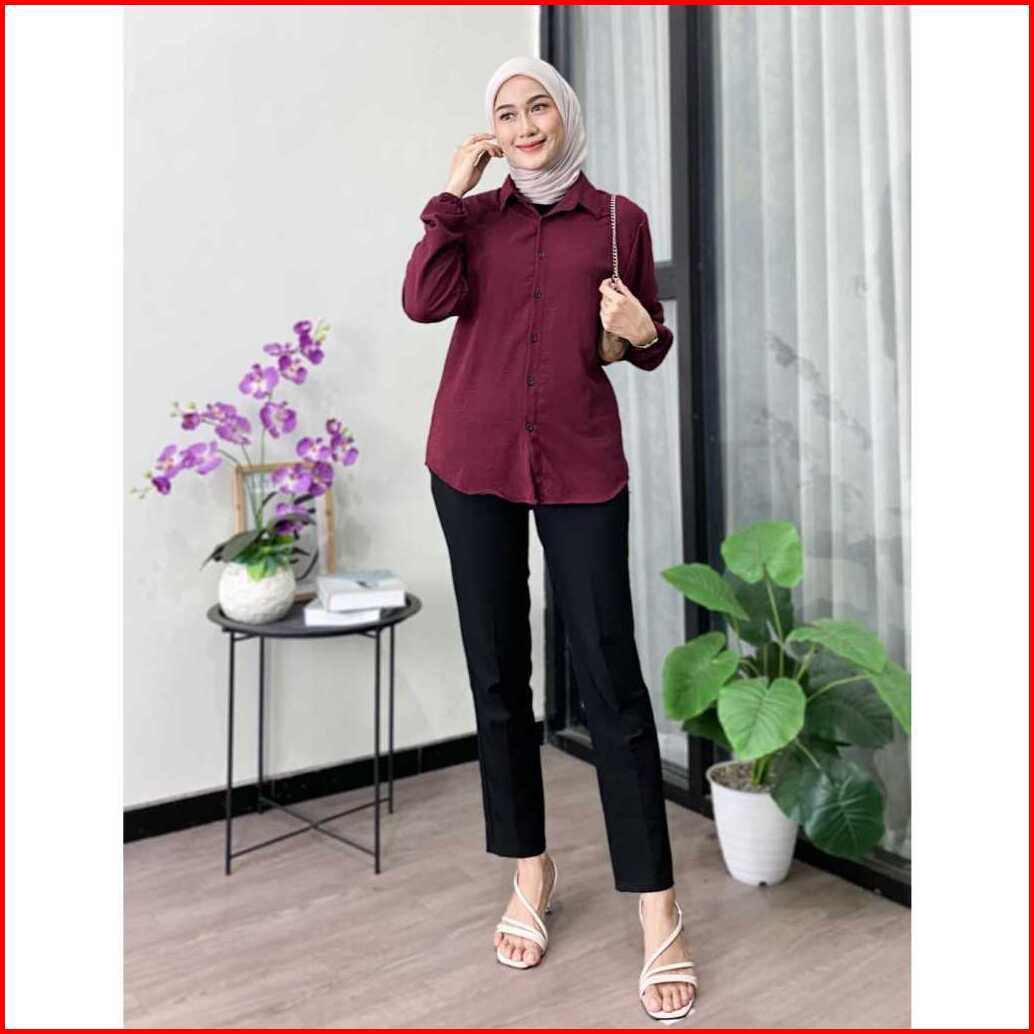 Kemeja Wanita Cringkle Atasan Wanita Polos Lengan Panjang Terbaru Baju Wanita Terlaris Kekinian