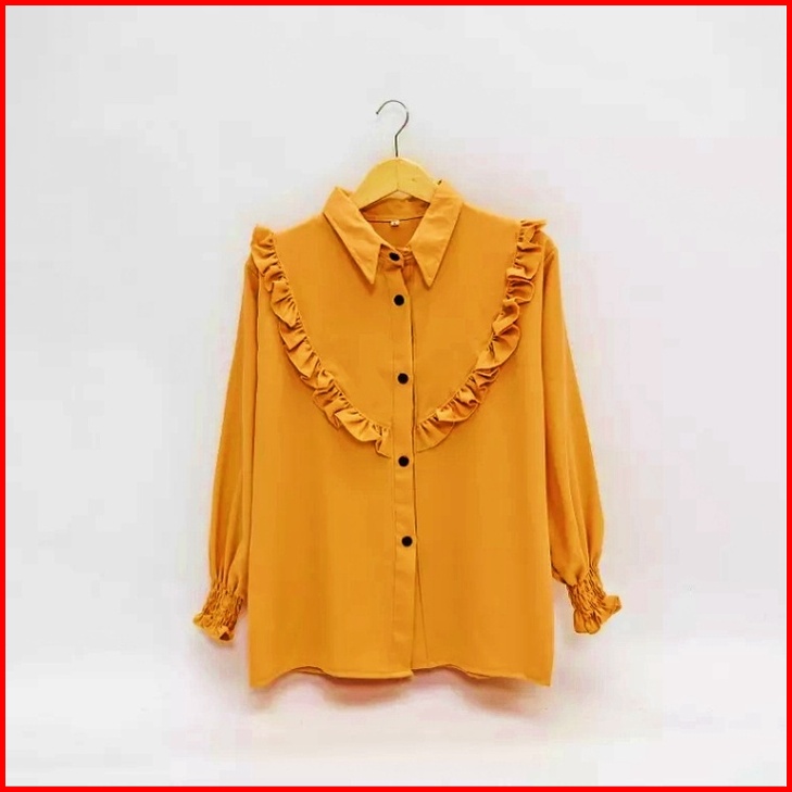 Kemeja Wanita Kerja Polos Bahan Moscrepe Model Rempel Kekinian