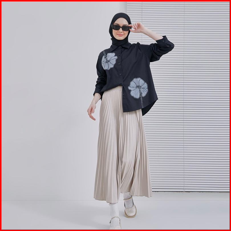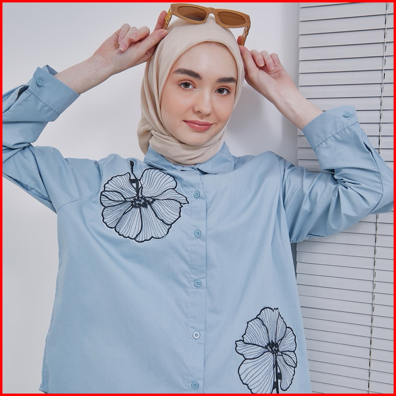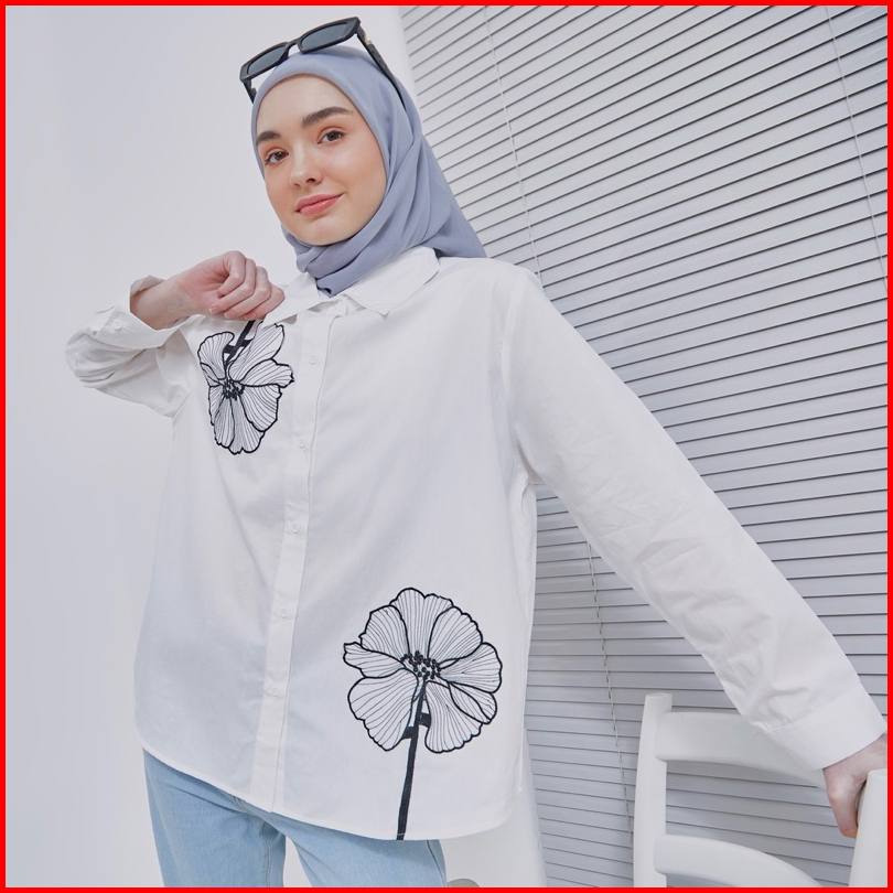 Emeraude Coraline Kemeja Wanita Bunga Atasan Kemeja Wanita Muslim Dewasa Atasan Kemeja Wanita Bunga Jumbo