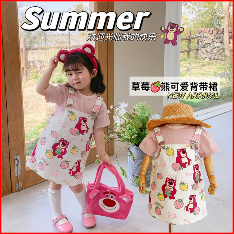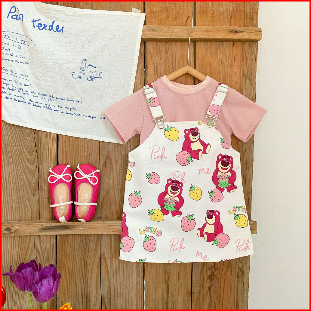 Princess Kesli 1-9 Tahun Overall Lotso Baju Anak Perempuan Strap Kids Nyaman Santai Denim Fashion Pembalikan Pola Beruan