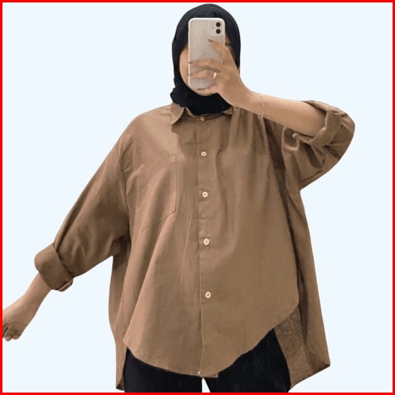 Kemeja Cewek Lengan Panjang Oversize Linen Premium Olivia Sirt