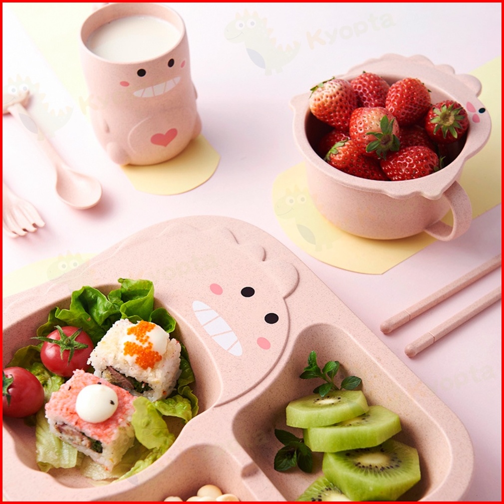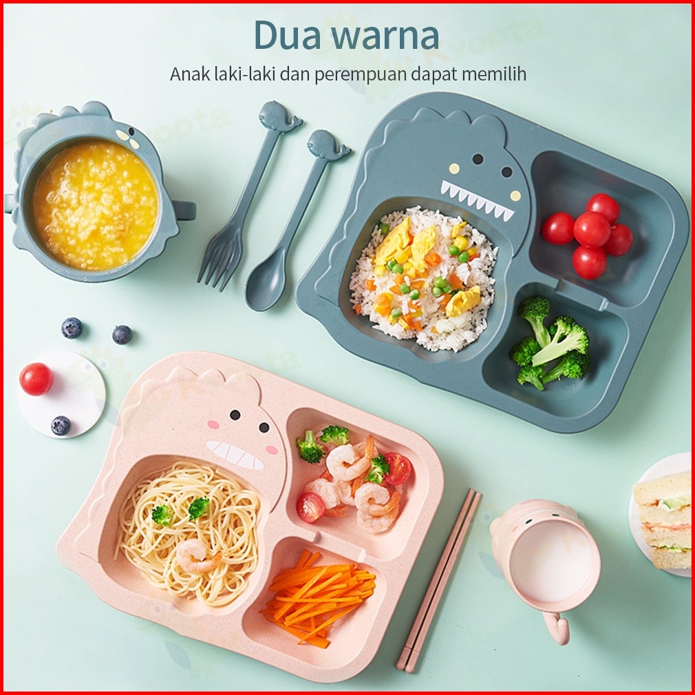 Kyopta Set Piring Makan Anak Bayi Dino Alat Makan Anak Lucu 4in1