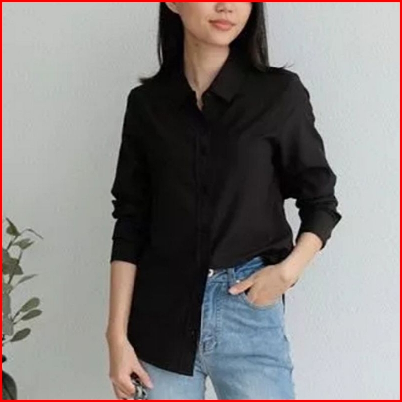 Kemeja Wanita Basic Kemaja Cewek Lengan Panjang Kasual Kerja