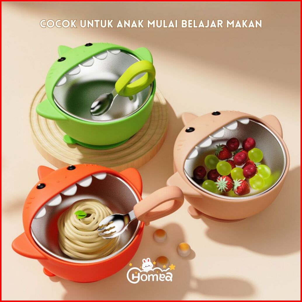 Homea Mangkok Mangkuk 2in1 Silicone Piring Makan Anak Baby Shark Duck Bebek Suction Bowl Stainless Steel 304 Mpasi Balit