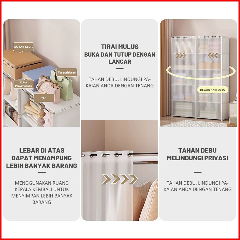 Yonezawa Lemari Pakaian Sederhana Dengan Tirai Anti Debu Rak Buku Serbaguna Rak Susun Rak Portable Lemari Buku Lemari Pe