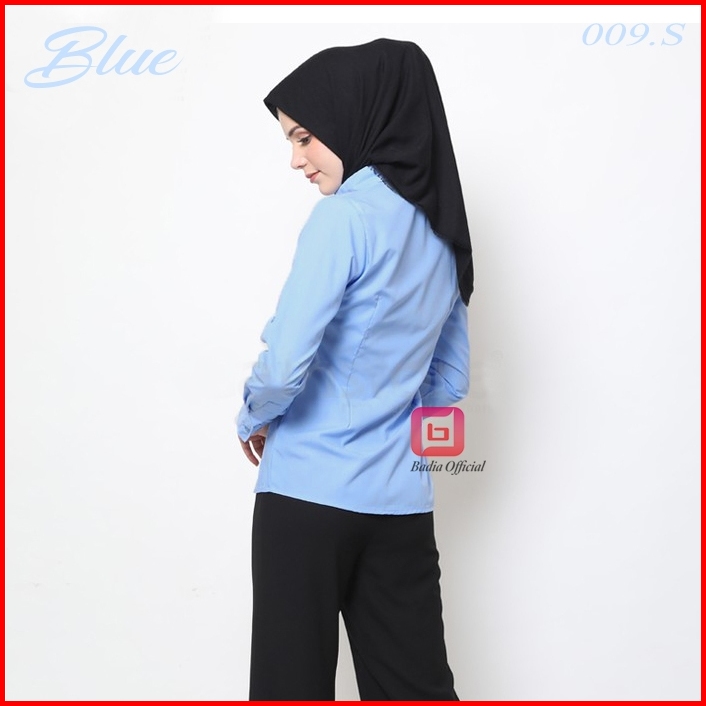 Kemeja Biru Muda Polos Wanita Motif List Bordir Kupnat Formal Kantor Kerja Katun Jumbo Big Size Wanita Premium