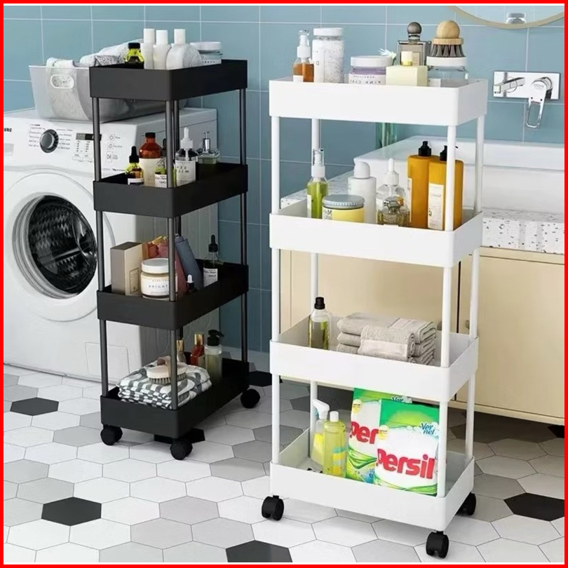 Rak 4 Susun Serbaguna Dengan Roda Warna Hitam Dan Putih Bahan Plastik