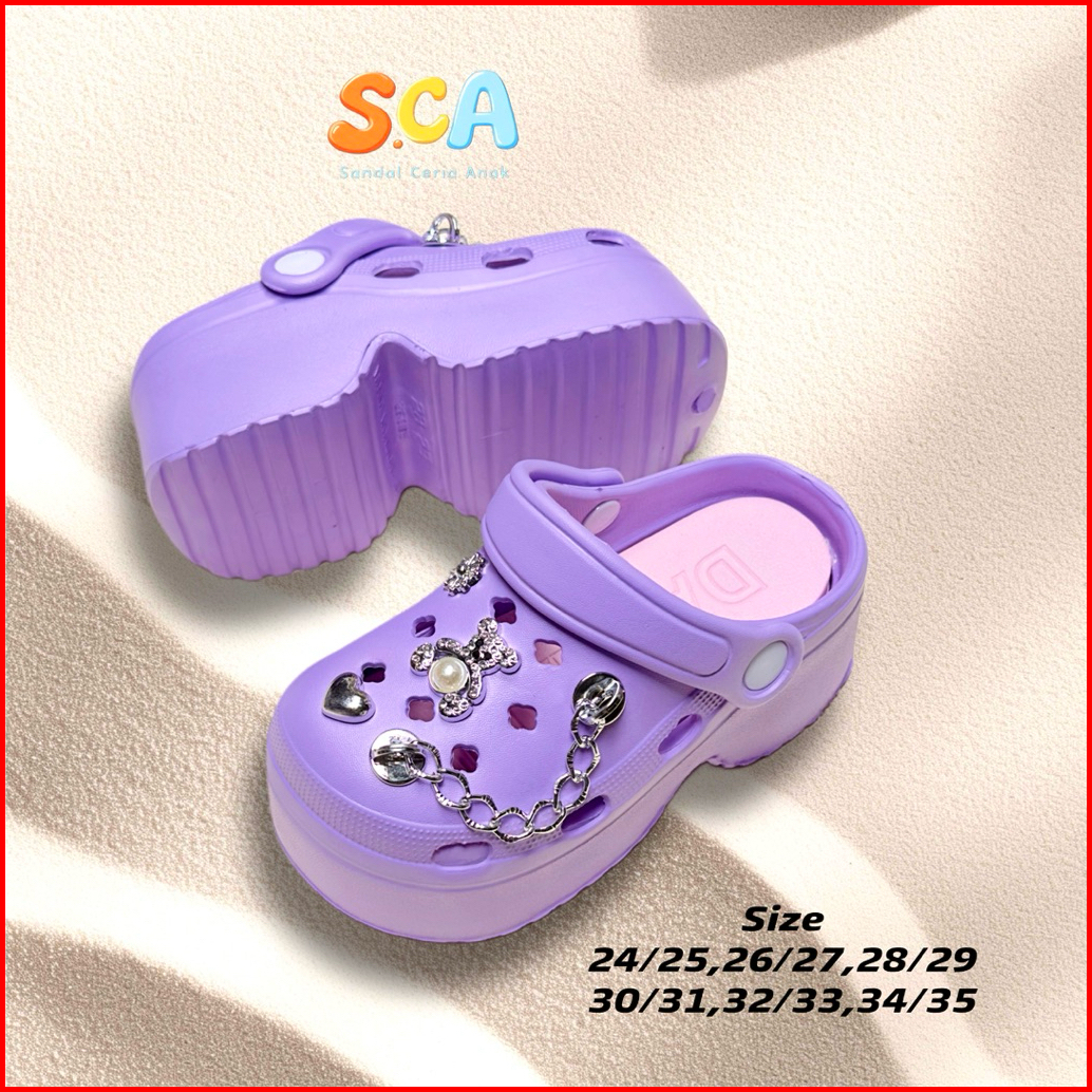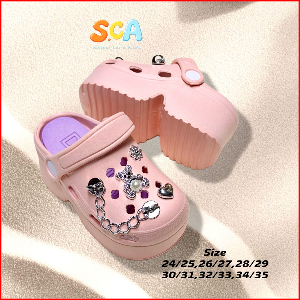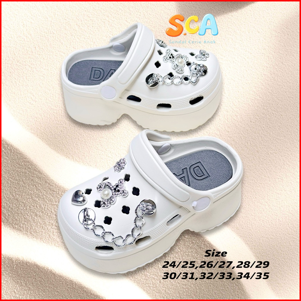 Sandal Anak Perempuan Model Baim Fuji Jibbitz Rantai Perak Aksen Mutiara Trendy Korean Style Sendal Tinggi Clogs Anak Ce