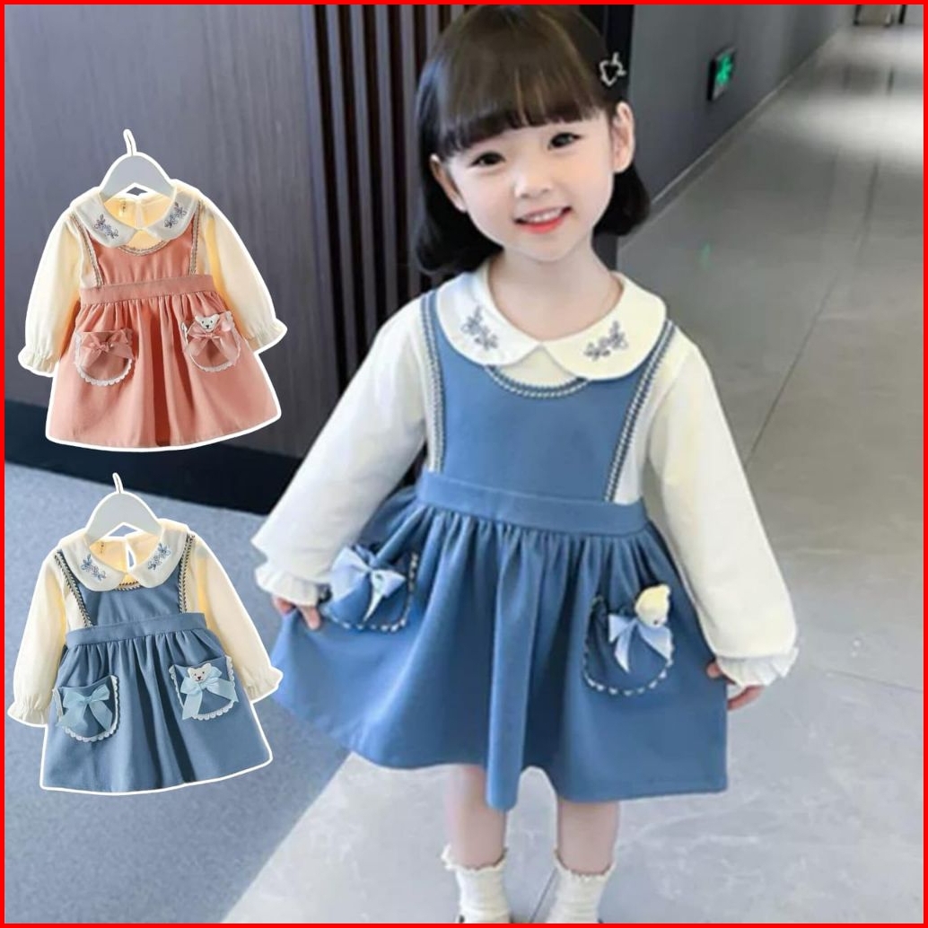 Sweetie Dress Party Baby Dress Kids Bear 1-4 Th Dress Anak Cewek Lucu Dress Kasual Anak Perempuan