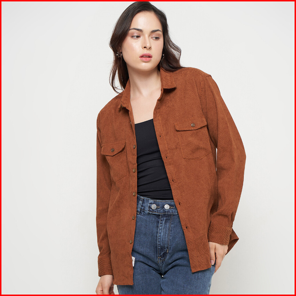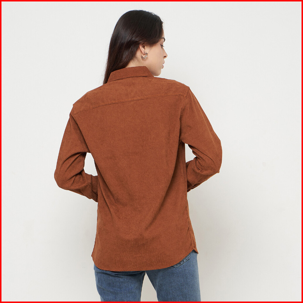 Kemeja Wanita Kodorai Lengan Panjang Kantong Dua Coklat Olr818