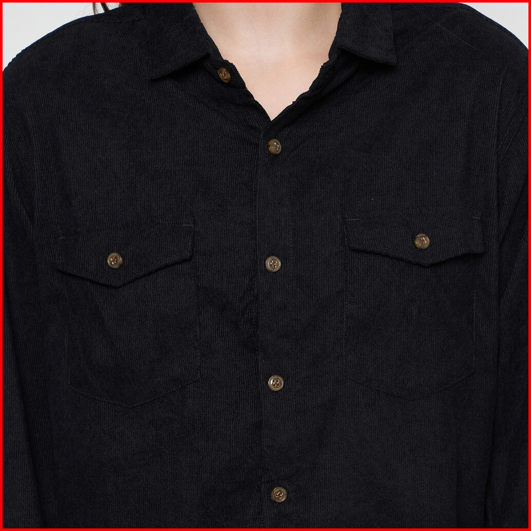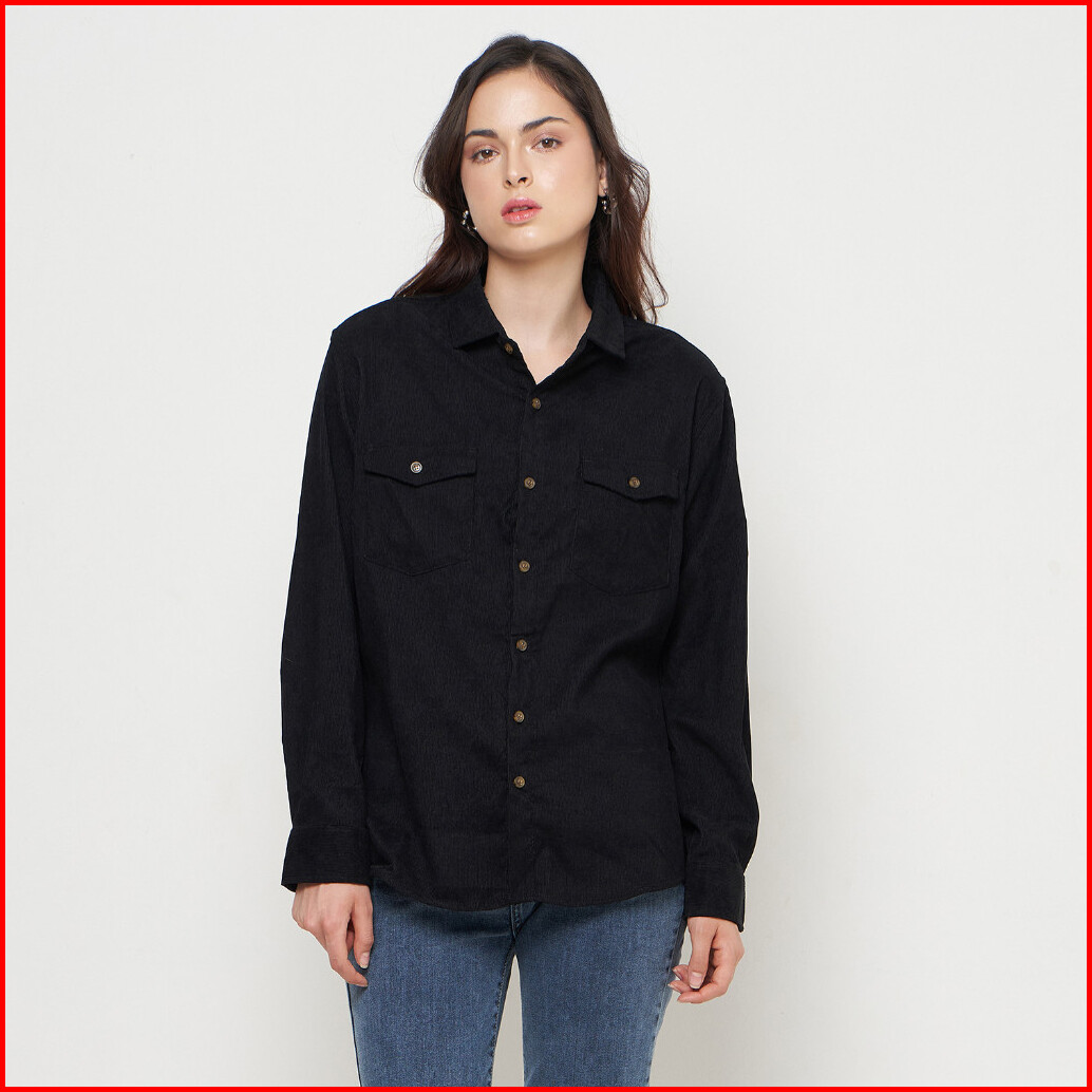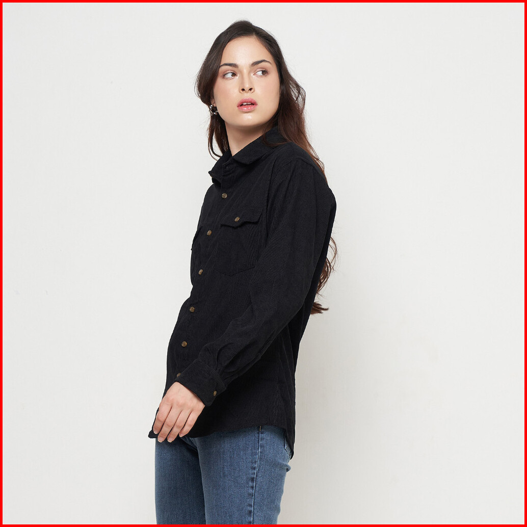 Kemeja Wanita Kodorai Lengan Panjang Kantong Dua Hitam Olr817