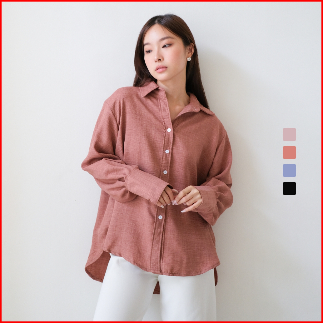 Sagi - Gwen Long Sleeve Linen Shirt Kemeja Lengan Panjang Balon Wanita Top Atasan Office Kantor