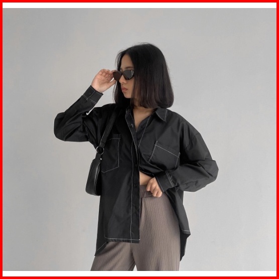Peach Poppy Venna Stitch Oversized Shirt - Kemeja Premium Wanita Oversized