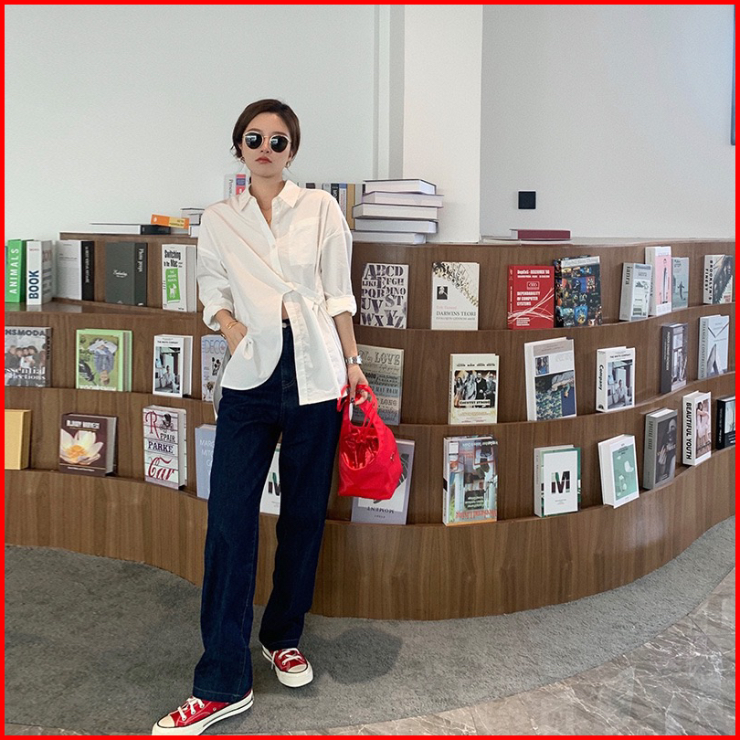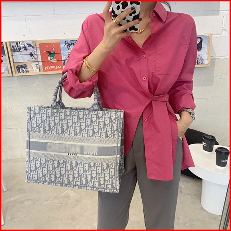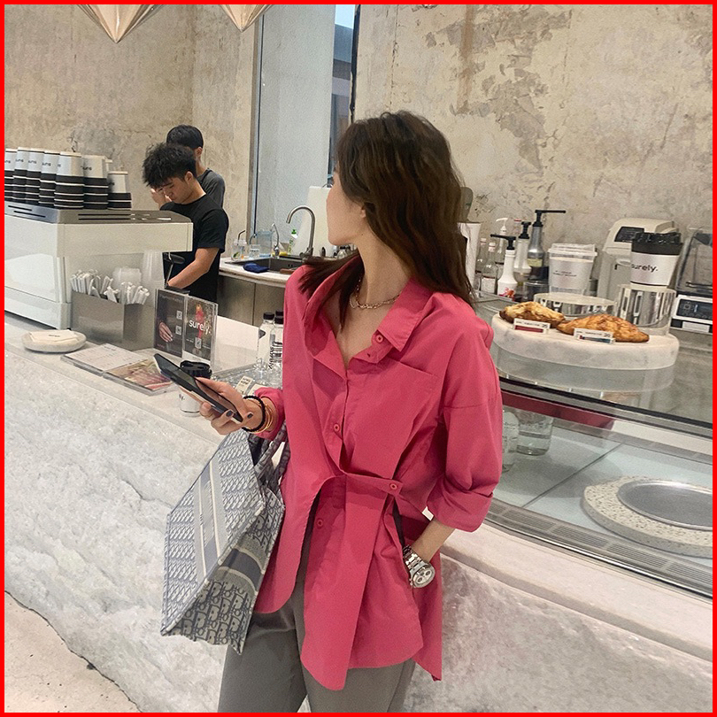 Yoora Kemeja Wanita Asimetris Lengam Panjang Murah Polos Bahan Katun