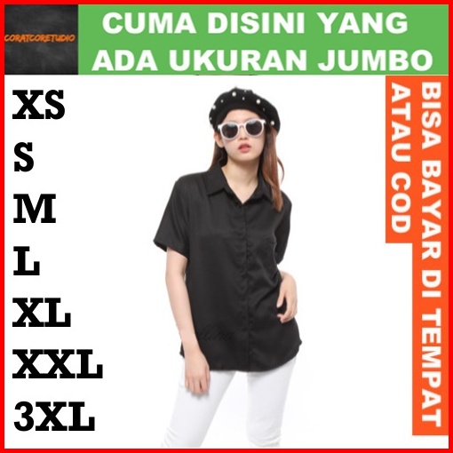 Xxl Xl L M S Xs Kemeja Wanita Hem Cewek Jumbo Big Size Pendek Polos Kantong Saku Formal Casual Hitam