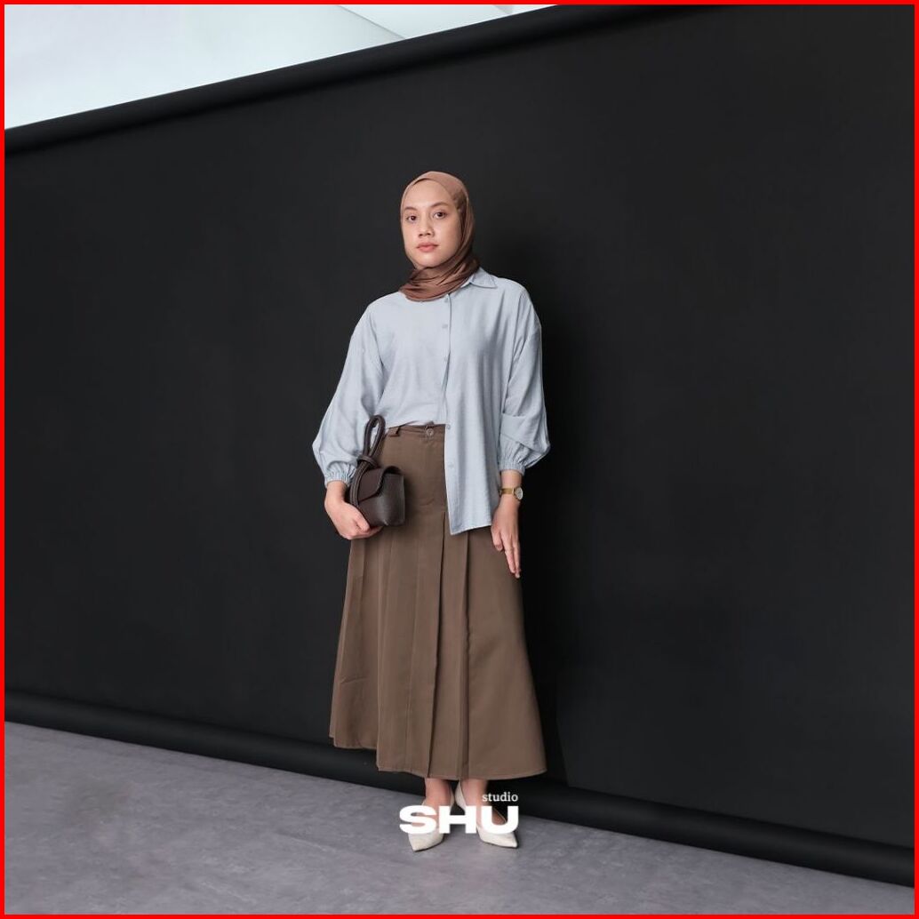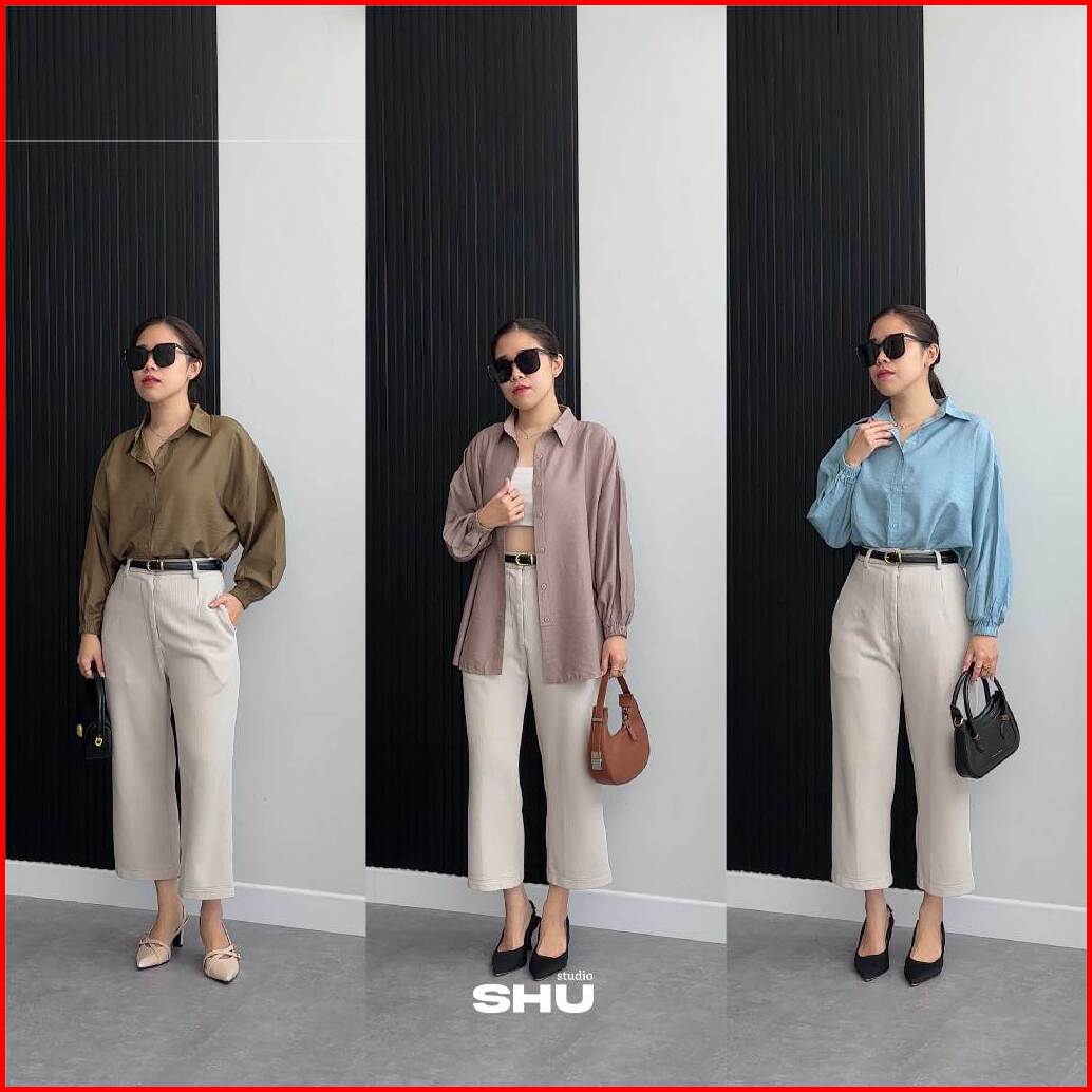 Shustudio - Puffy Linen Shirts Atasan Wanita Kemeja Linen Premium Lengan Balon Kemeja Casual