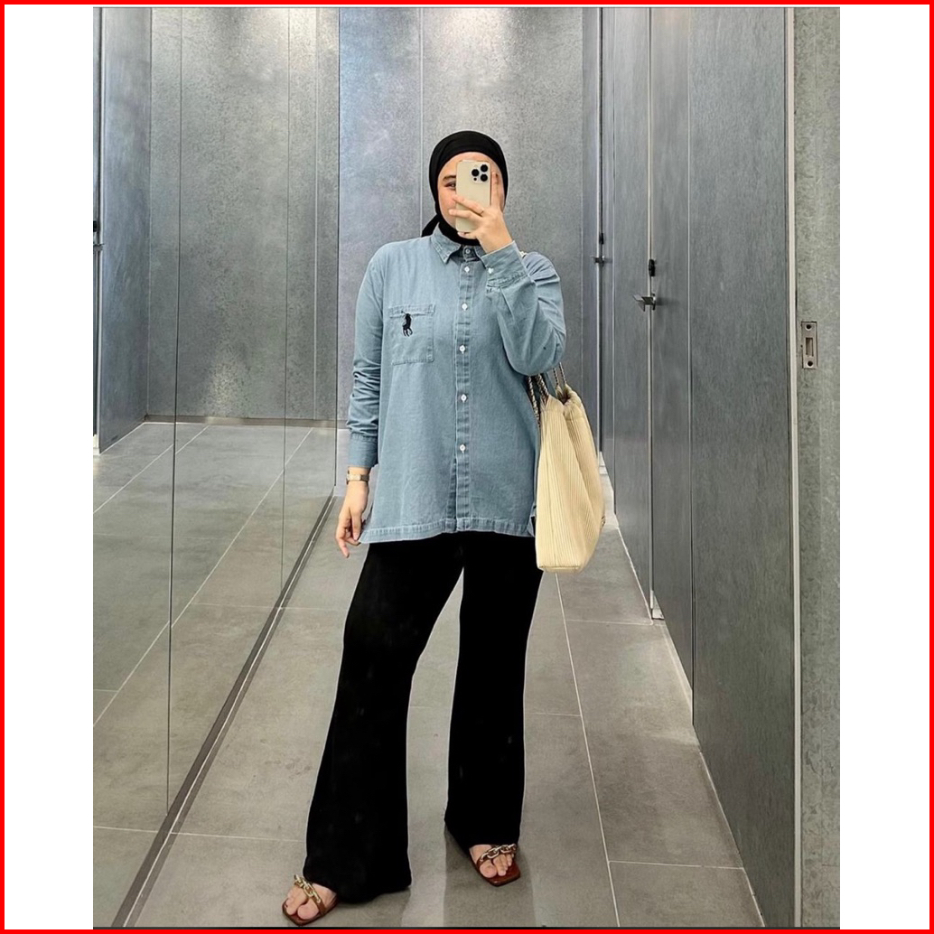 Kemeja Soft Jeans Premium Wanita Atasan Kemeja Jeans