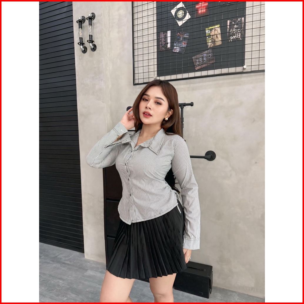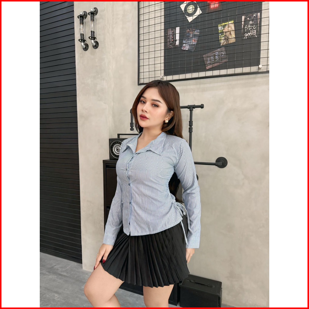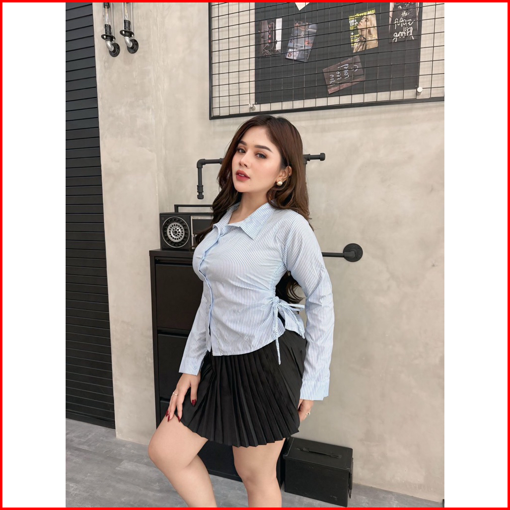 Raisa Kemeja Katun Salur Fit Body Lengan Panjang-motif Stripe Kemeja Wanita