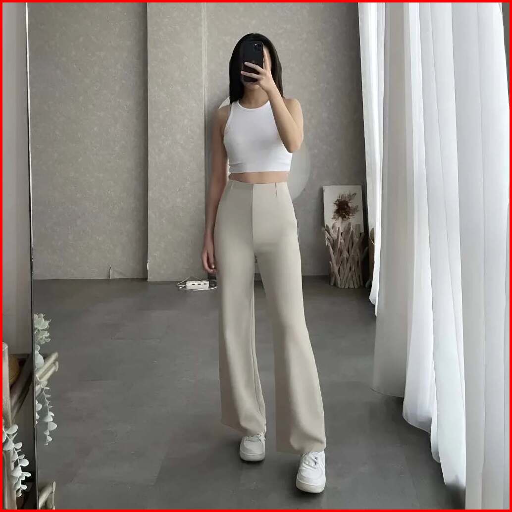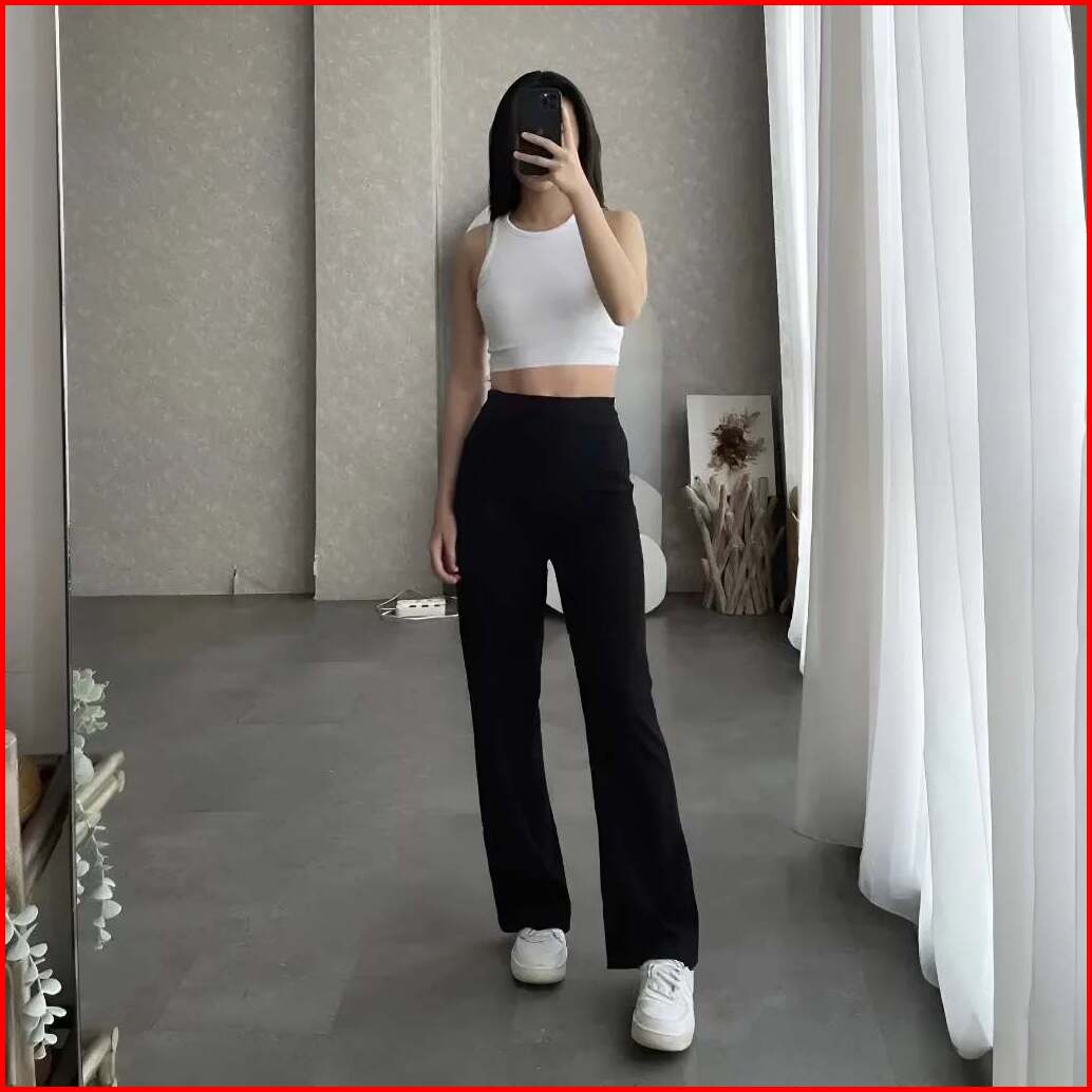 Qirens- Evelyn Flare Pants Highwaist Cutbray Scuba Premium - Celana Adem Melar Panjang