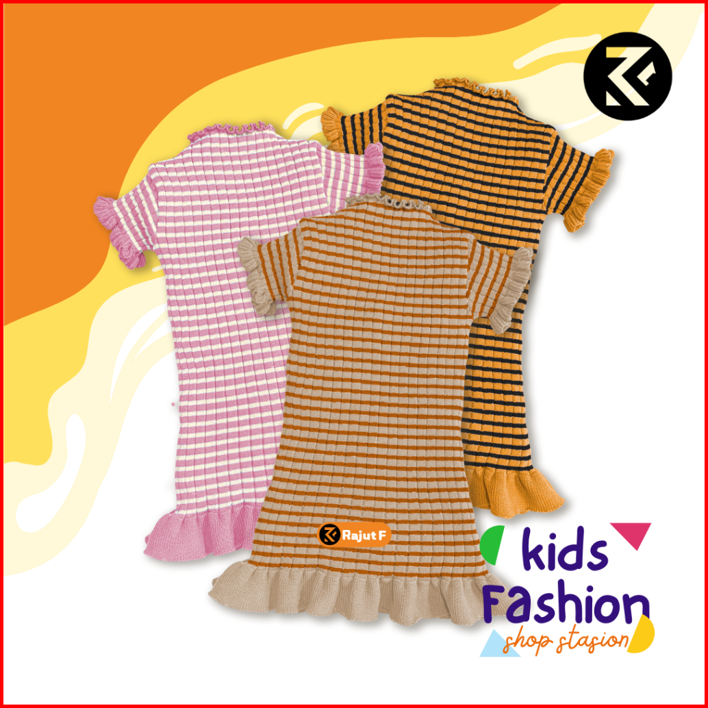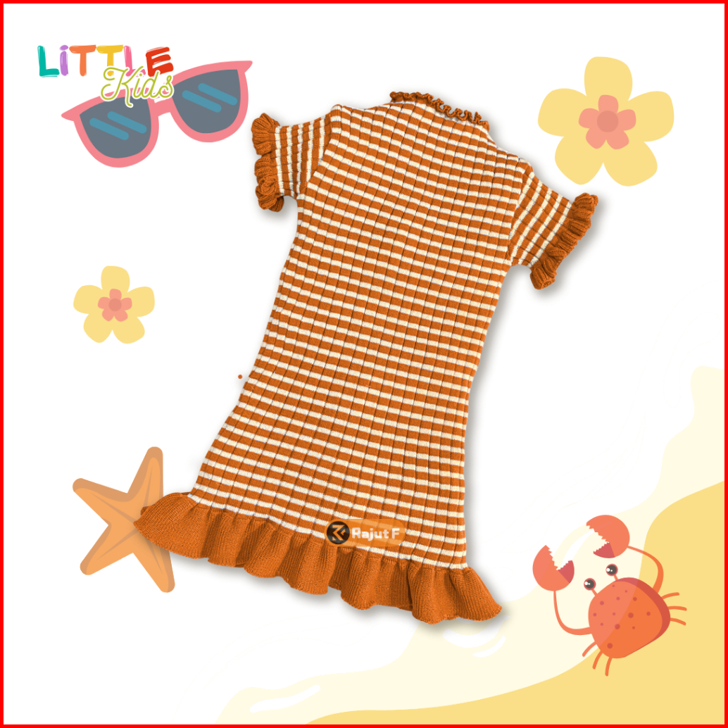Dress Rajut Anak Perempuan Lengan Pendek Dress Aurora Kriwil Curly Fashion Korea 1-5th