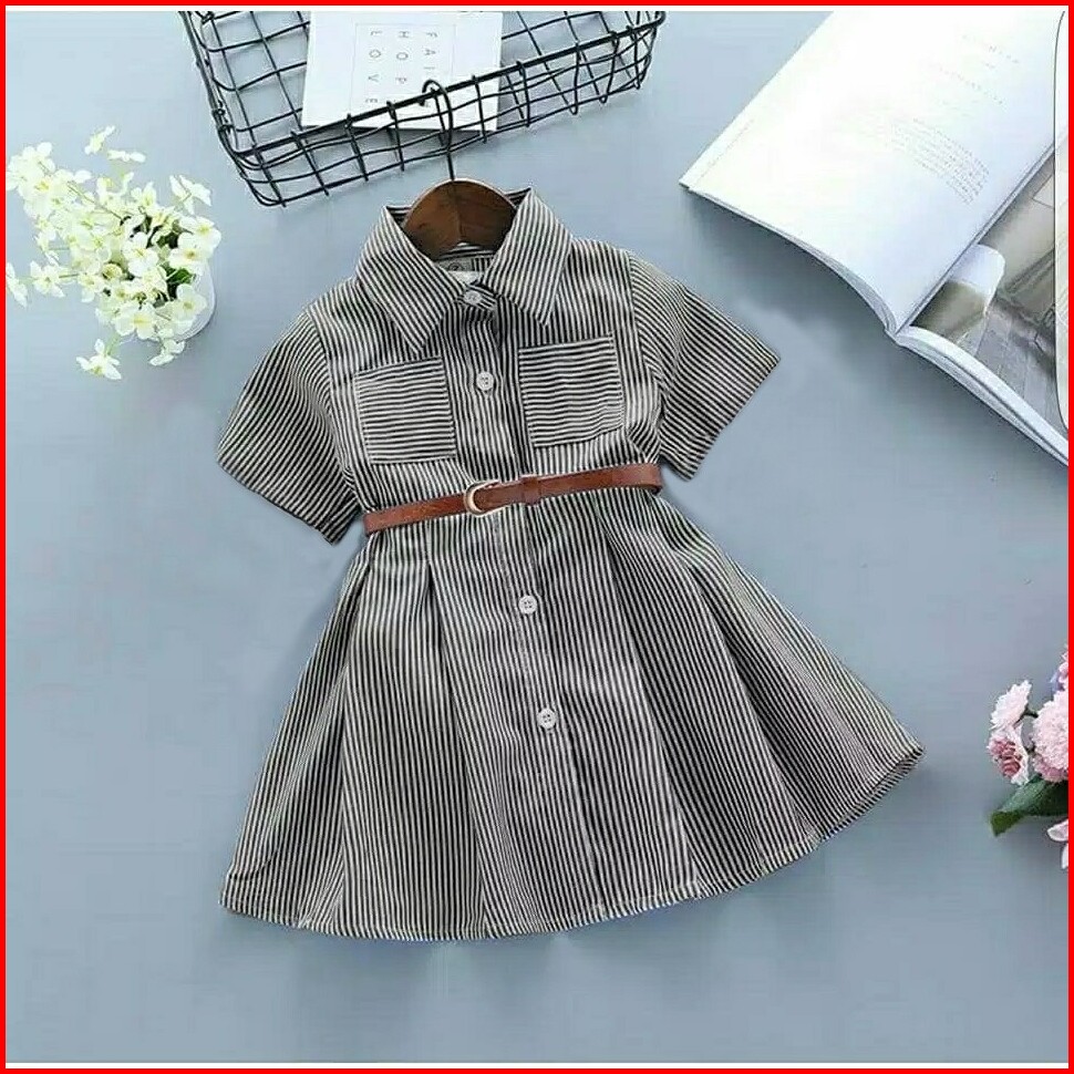 Tokomilkan - Orin Dress Anak Perempuan Salur Bahan Katun Adem Usia 1-6 Tahun