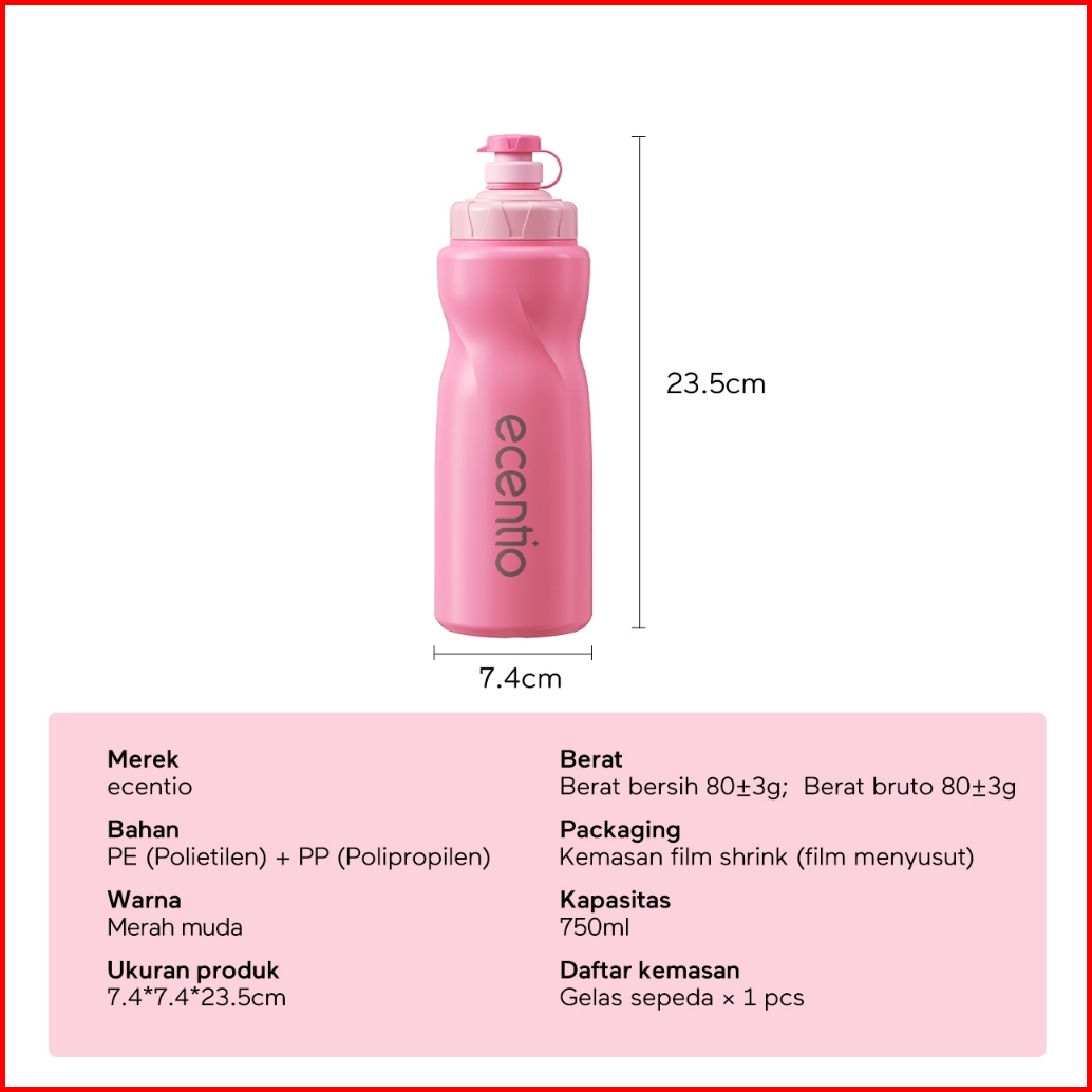 Ecentio Botol Minum Olahraga Portable 750ml Squeeze Plastik Aesthetic Botol Minum Lucu Bpa Free Barang Lucu Murah Botol