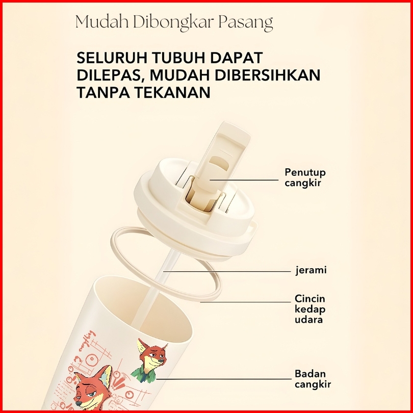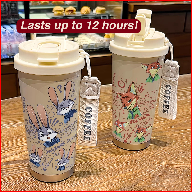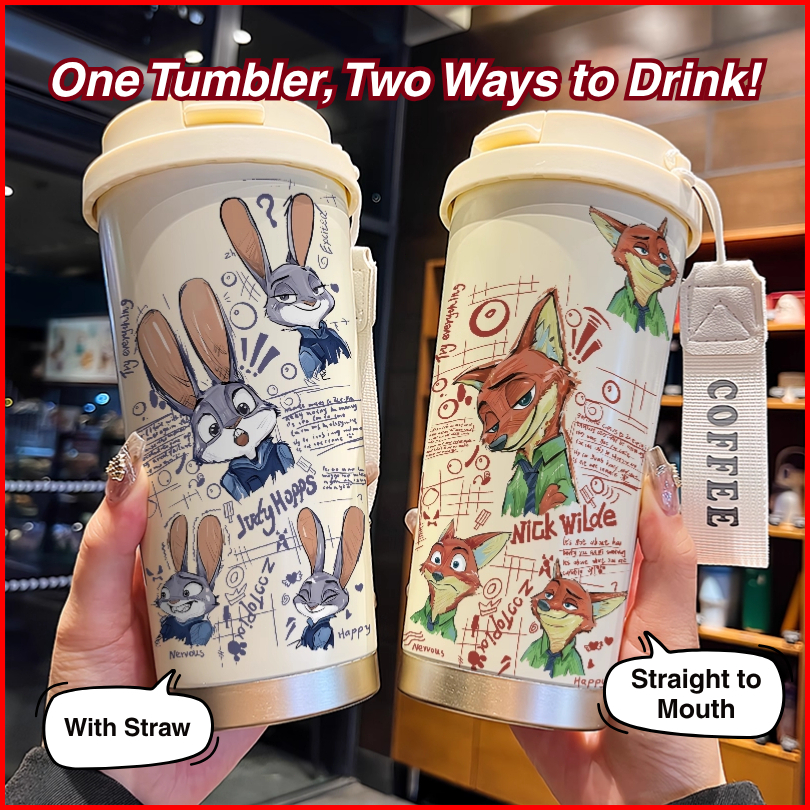 Tumbler Zootopia Bunny And Fox Nick Judy Couple Kapasitas 500ml Stainless Steel 316 Anti Bocor Desain Tali Jinjing Premi
