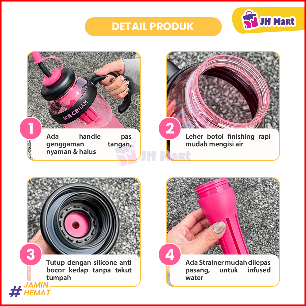 Jhm - Botol Minum Jumbo Ice Cream Tumbler 1400ml Aesthetic Dengan Sedotan Bpa Free