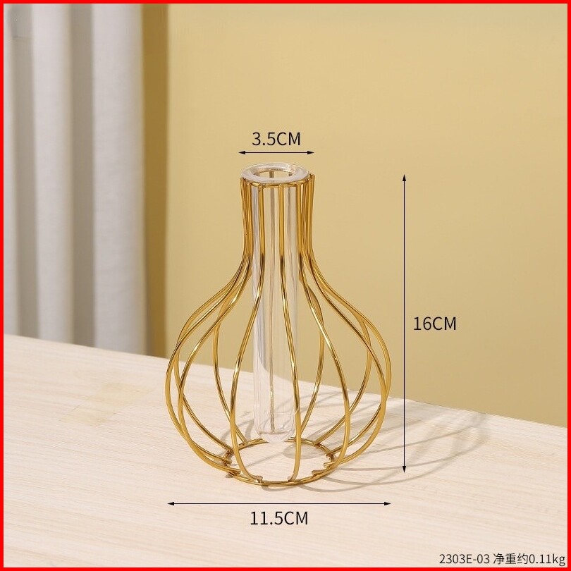 Nordic Golden Glass Vas Besi Hidroponik Tanaman Vas Bunga Meja Kedai Kopi Kantor Dekorasi Rumah Aksesoris Modern