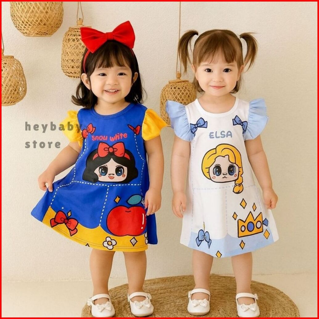 Promo 12.12 Heybaby Dress Elsa And Snow 1-8 Tahun Dress Anak Perempuan Putri Kartun Elsa Karakter Princess Baju Putih Da