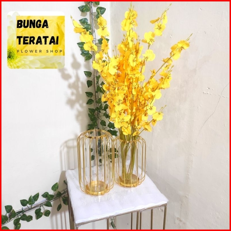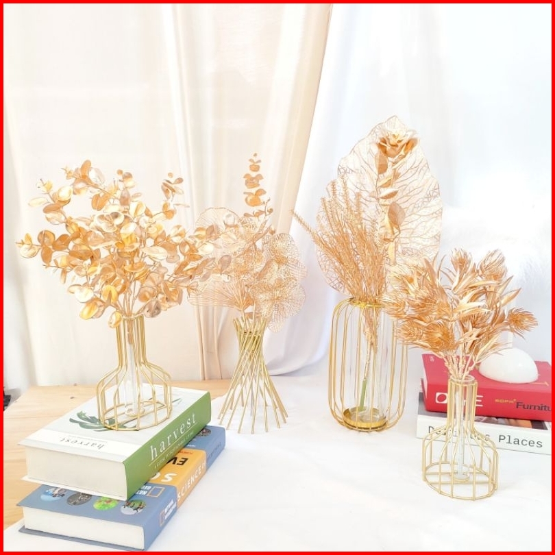 Vas Pot Bunga Metal Logam Dekorasi Meja Artificial