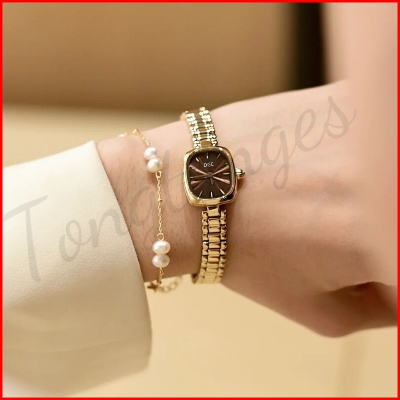 Tg141 Jam Tangan Quarts Wanita Alloy Rantai Kotak Gadis Stainless Steel Kotak Casual Korea Fashion Hadiah