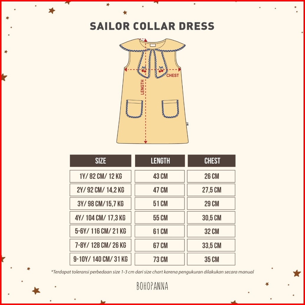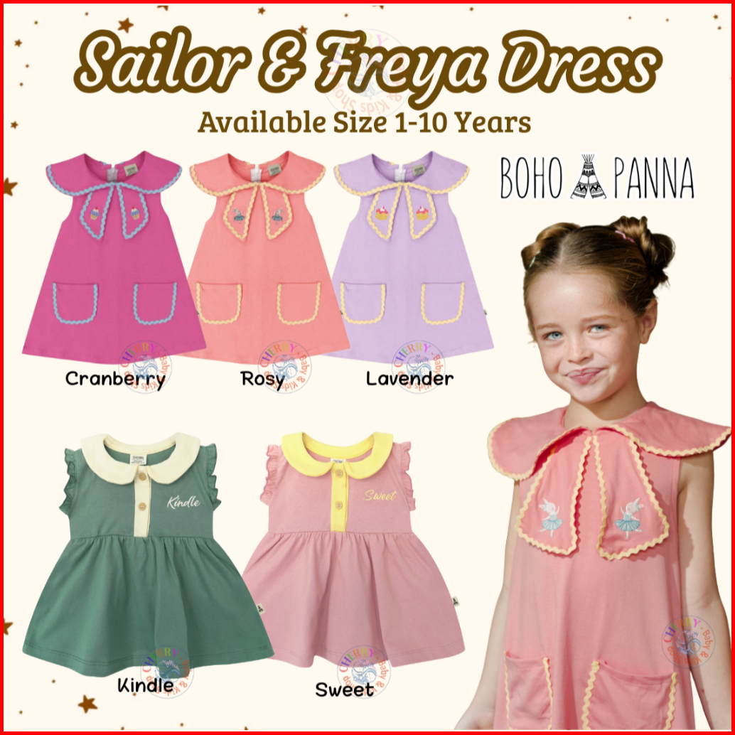 Bohopanna 1-10 Tahun Sailor Collar Dress Freya Ruffle Dress Kutung Kerah Pocket Anak Perempuan Tanktop Dress Cbks