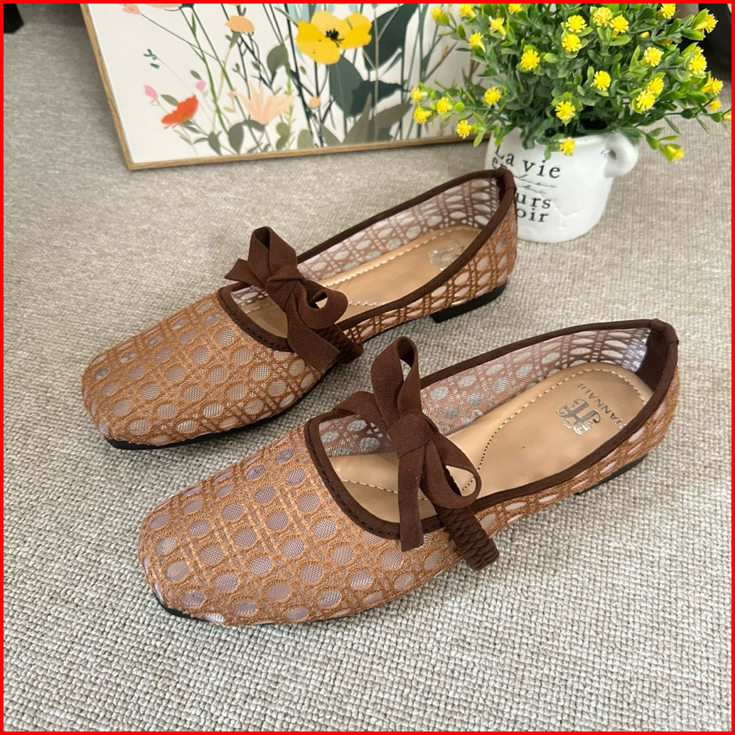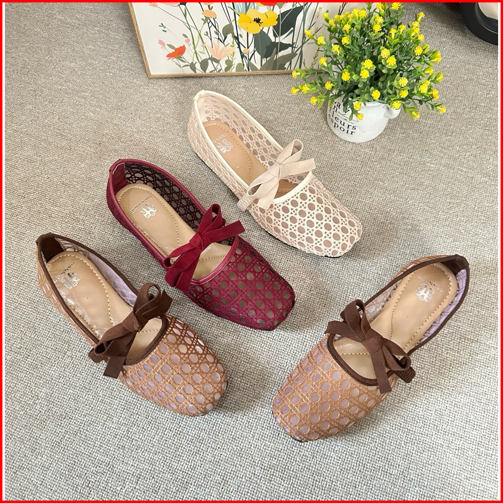 Flatshoes Model Jaring Variasi Tali Pita Sepatu Jaring Wanita Flatshoes Wanita Empuk Dan Nyaman