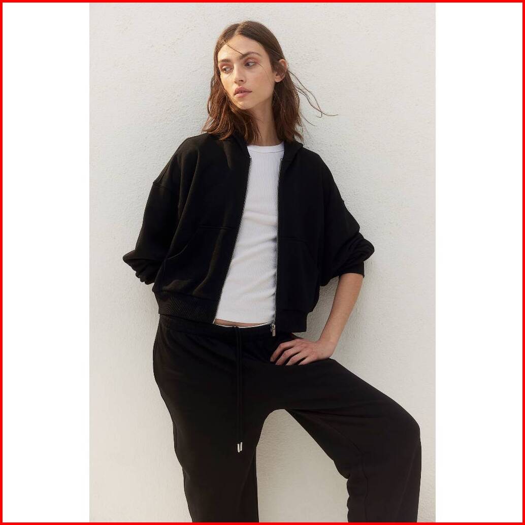 Zipper Boxy Oversize Basic Polos Lengan Balon Hoodie Zipper Wanita Sweater Wanita Crop Zip Basic Jaket Resleting Flecee