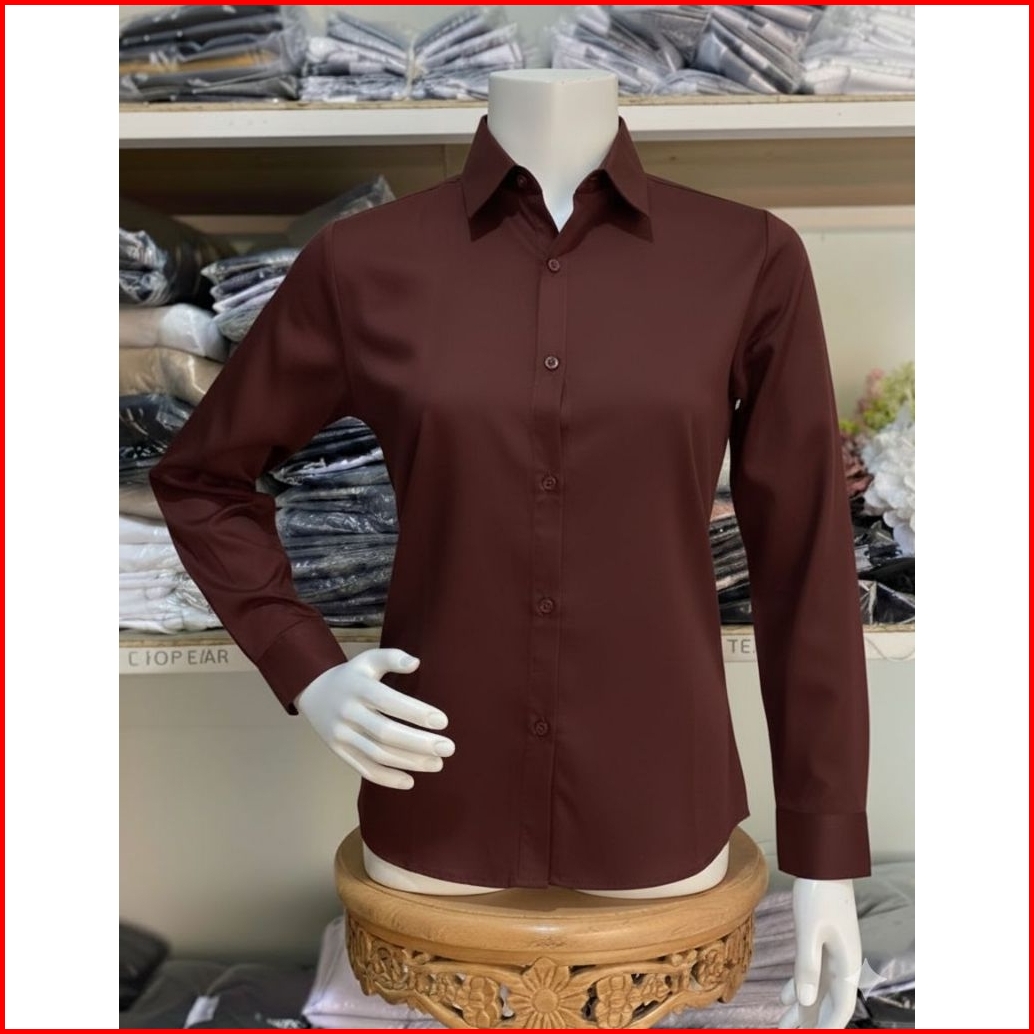 Kemeja Wanita Kemeja Cewek Polos Lengan Panjang Slimfit Hem Wanita Polos Kantor Hitam Putih Maroon Navy Kasual Pakaian S