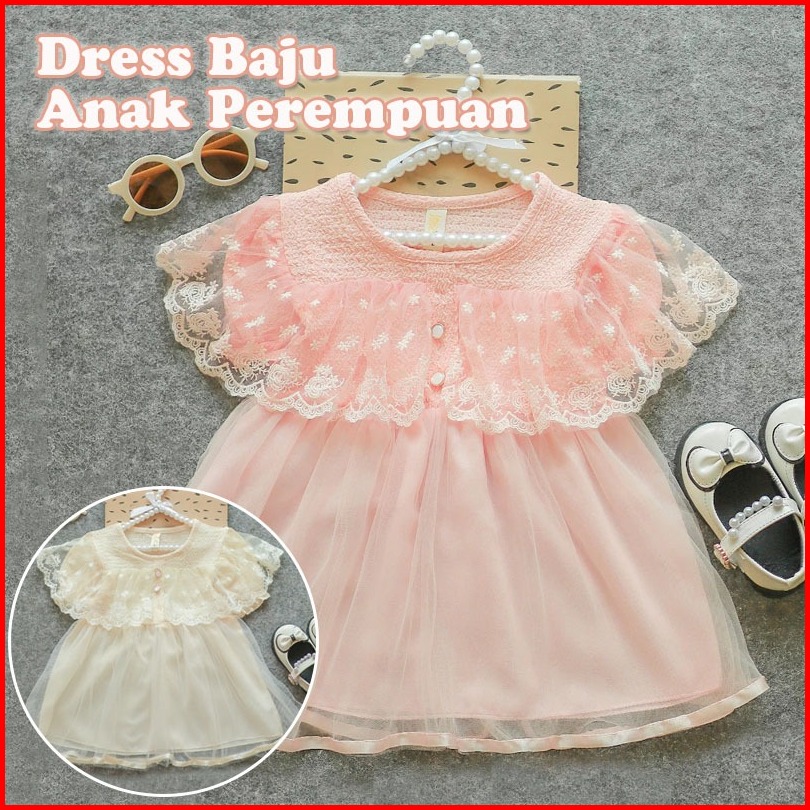 Rainbow Dress Baju Anak Perempuan 1-4 Tahun Korean Style Lace Mesh Princess Skirt Gaun Dress Bayi