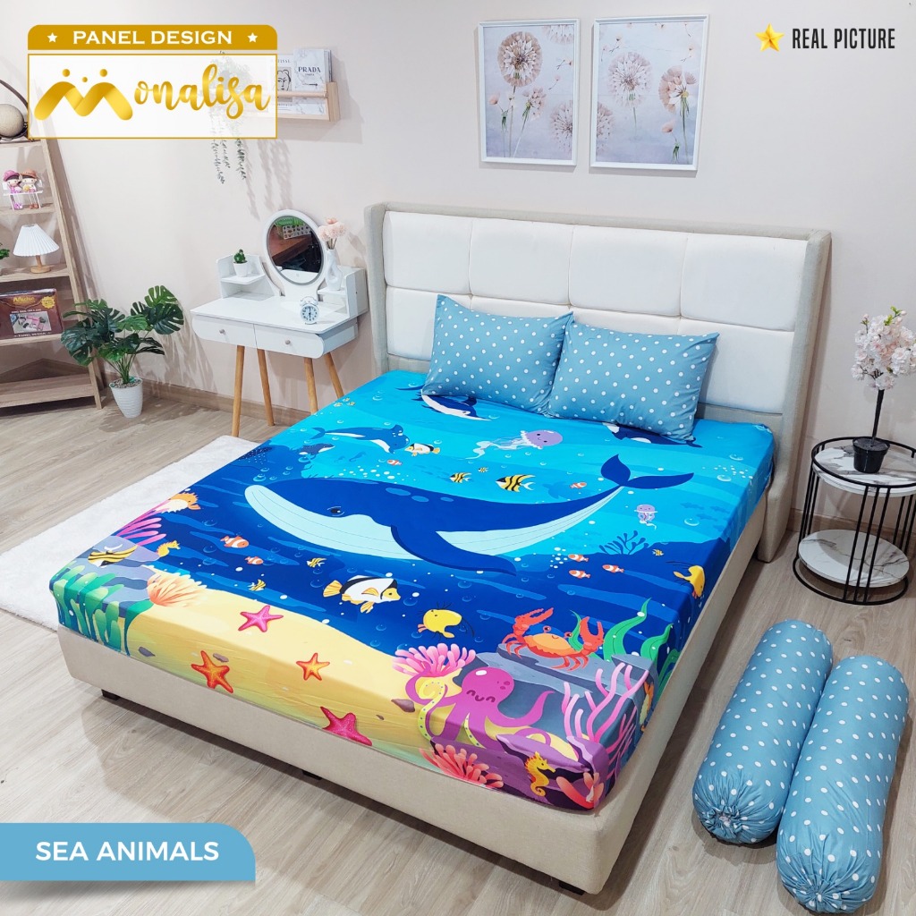 Monalisa Sprei Panel Design Uk 160 / 180 x 200 T 20 Katun Sintetis / Motif Anak / Seprei Halus