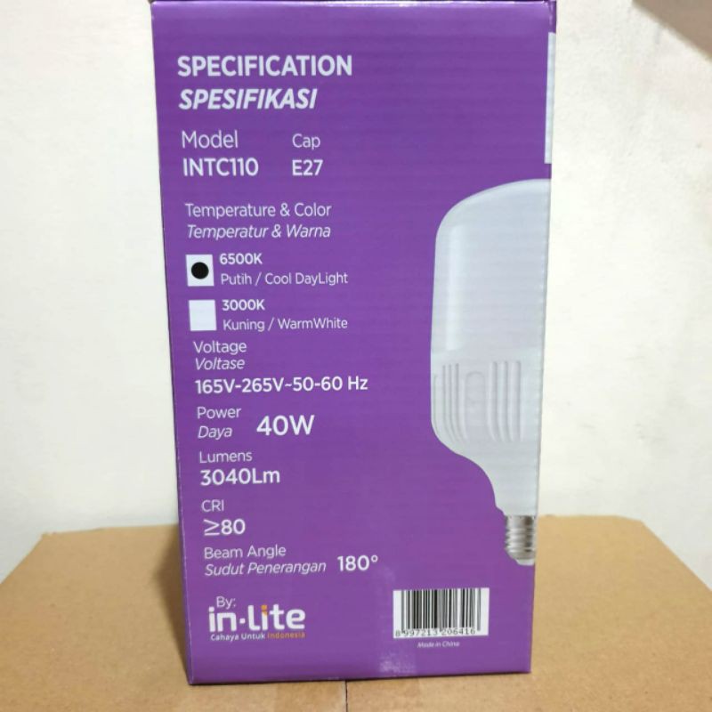Lampu LED Bohlam Tabung Intech 40 Watt / Lampu Bohlam LED Cahaya Putih